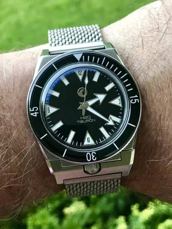 H2O tiburón. Precioso, estéticamente recuerda al Triton subphotique, medidas correctas para tu muñeca y en presupuesto, es muy versátil y puedes configurarlo a tu gusto, desde el color del dial, al tipo de agujas o los números del bisel!