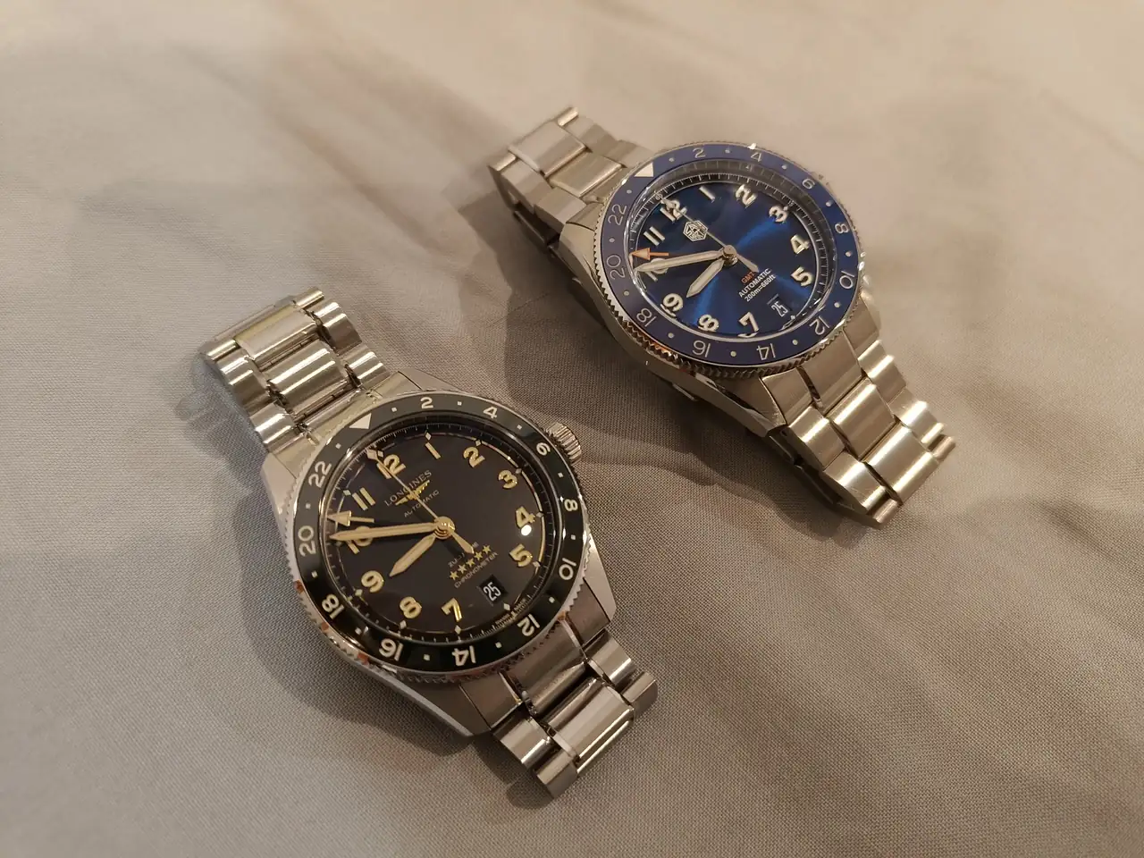 Aprovechando que tengo un Longines Spirit Zulu Time de 39mm, y que San Martin tiene un homenaje de este modelo, me lo he comprado para compararlos.