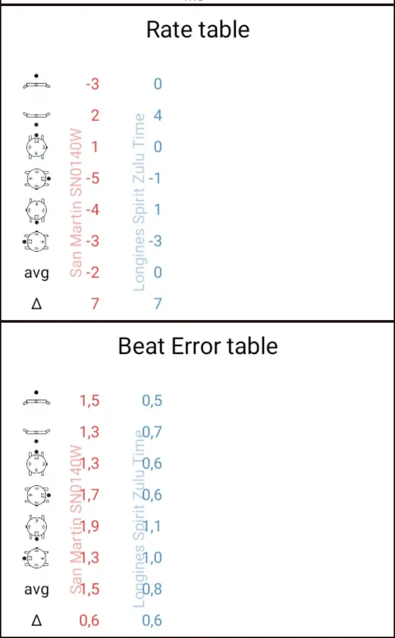 Sorprende la precisión del San Martin, y el beat error de ambos. El del Longines me parece elevado la verdad. El del San Martin si que es elevado, pero era más de esperar. Aunque es el NH con mayor beat error que he tenido hasta la fecha, cuestión de suerte…