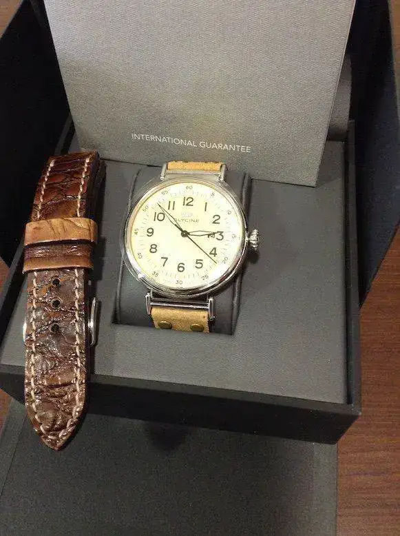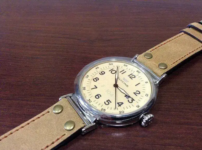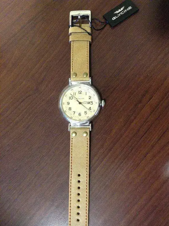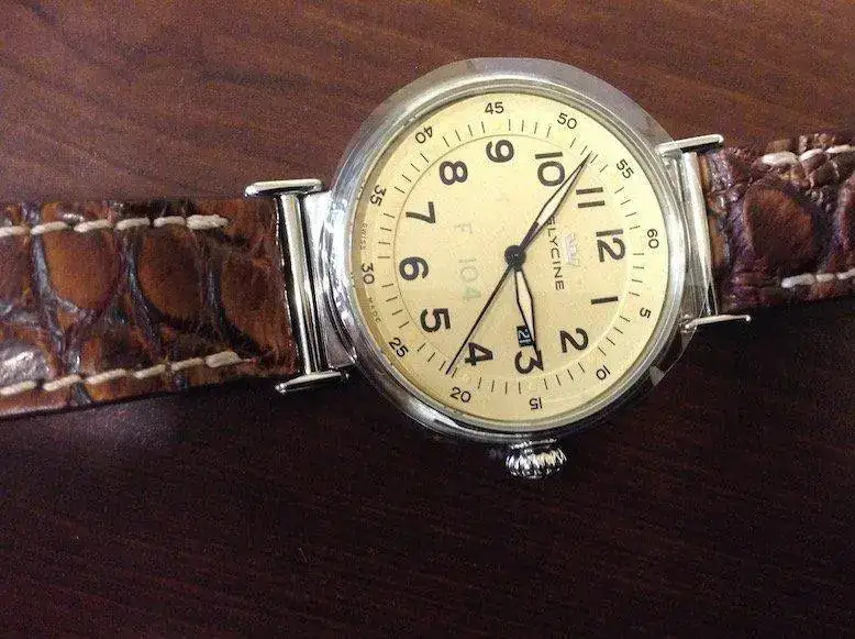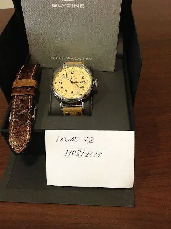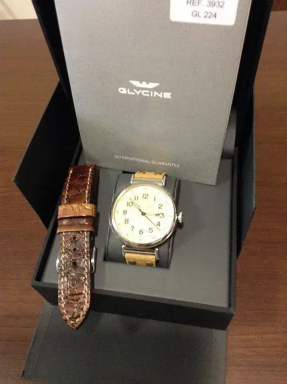 Pongo para venta este Glycine F104 a estrenar, Lo compre..mientras me llegaba le compre una correa de cocodrilo autentico Mensarea que incluyo y le queda muy bien,.... me lo probé y vi que me quedaba grande....... Es un reloj precioso y con unos acabados de miedo, es una pena que las fotos no le hagan justicia