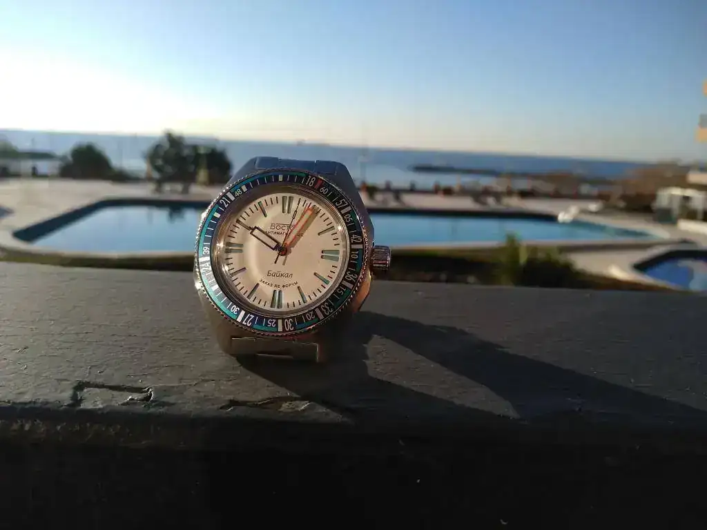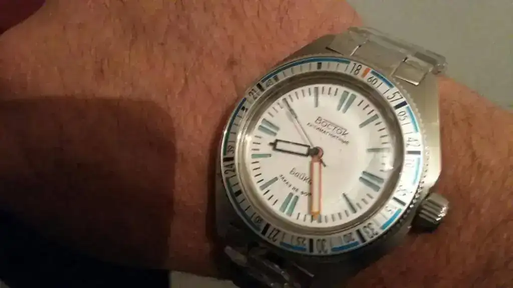 Ya está en mis manos. El bisel gris le da un toque más vintage y más ruso al reloj, el azul un estilo más sport.