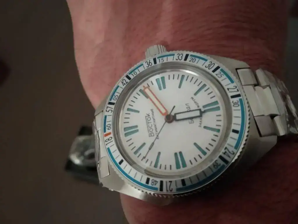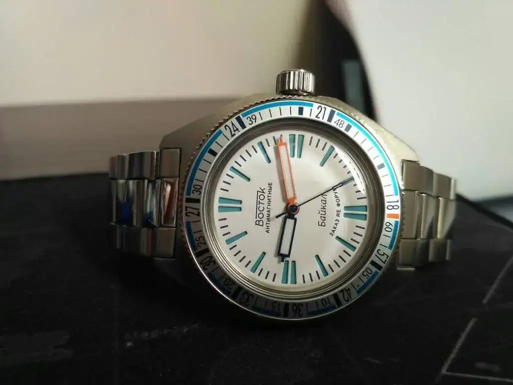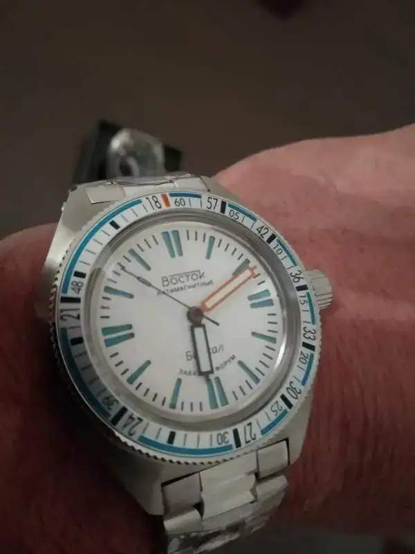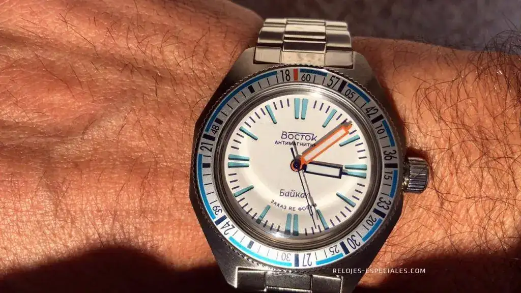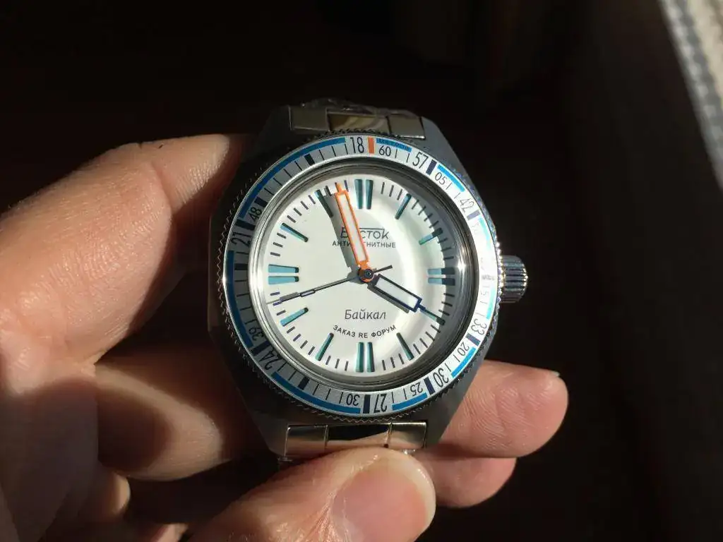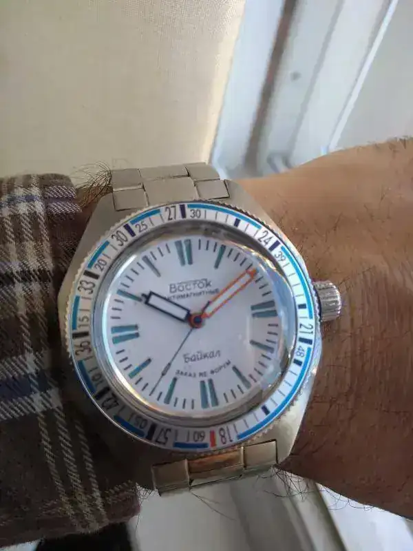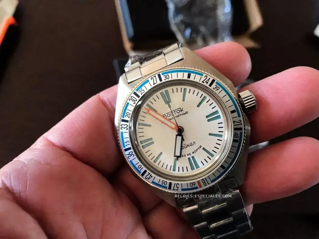 La verdad, no he seguido el proyecto como debiera, pero es precisamente por esto que cuando he tenido el Baikal en mis manos me he quedado mucho más que gratamente sorprendido: no sólo por los acabados, que me parecen por encima de lo que sería exigible: el bisel está perfectamente calibrado, ni muy duro ni muy suelto. El armis no tintinea, y la combinación matizado/pulido de sus eslabones me ha hecho pensar en los Oyster cerámicos de Rolex. El plexi, si bien distorsiona un poco, le da un encanto difícil de explicar, como un tono cremoso a esa esfera tan blanca. Un acierto -emho- lo del dial sandwich. Las agujas, la caja tipo tuerca... todo.