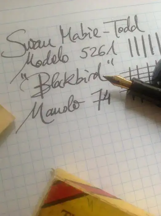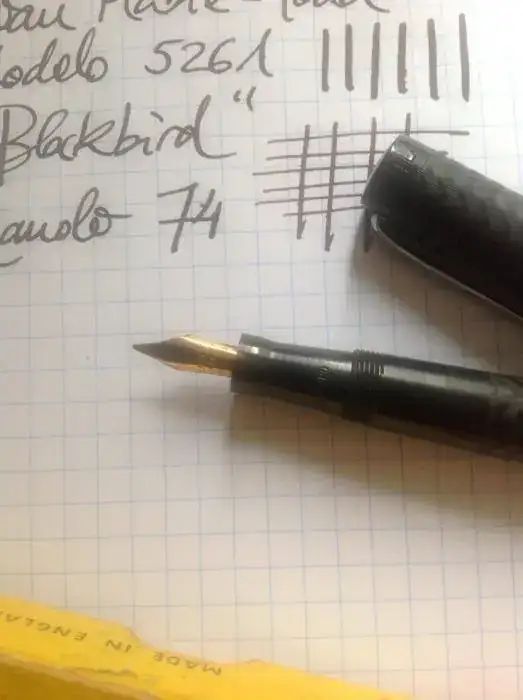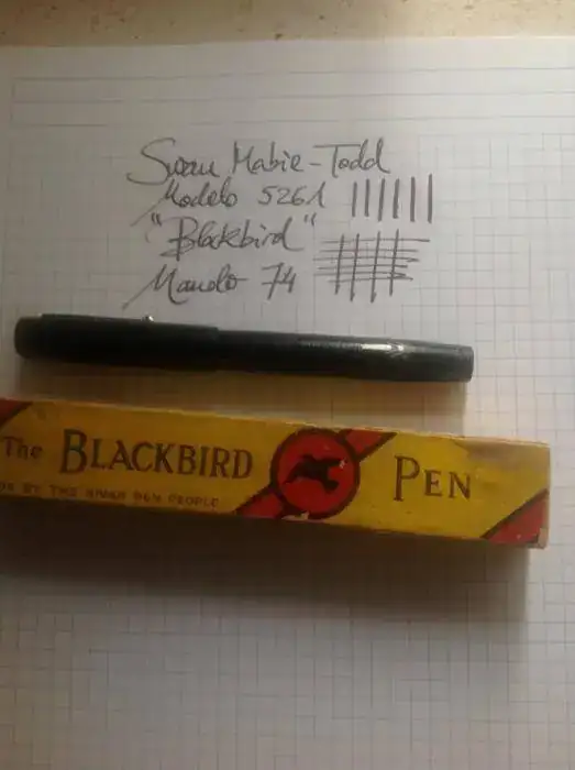 Vendo esta Swan Blackbird 5261 con plumín de oro semi-flex de trazo yo diría que F pero con flujo abundante. Está en un estado increíble para los años que tiene, no sé si se podrá apreciar en las fotos: el "chasing" del cuerpo está impecable y todas las inscripciones se pueden leer perfectamente. Viene con caja original de la época, con instrucciones de uso originales.