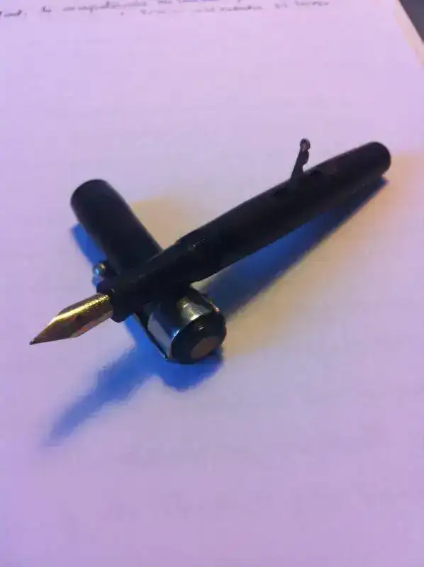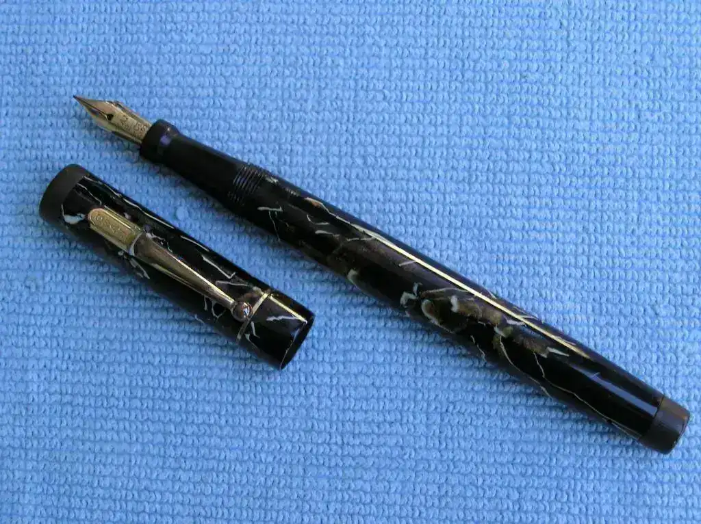 La pluma que presento es una Swan Leverless L205 47 de los años 30 en el raro color Mosaic Gold Marble.
