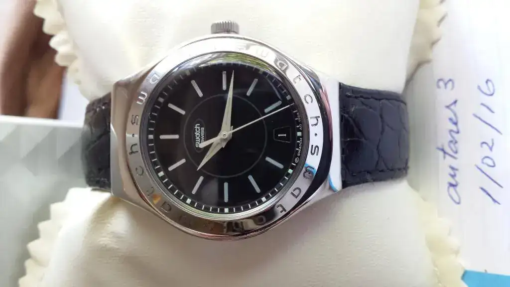 Saco a la venta este Swatch automático de esfera negra con un "look" muy elegante. Está como para estrenar porque lo he usado poquísimo, va perfecto de funcionamiento, basta casi con tocarlo para que arranque.