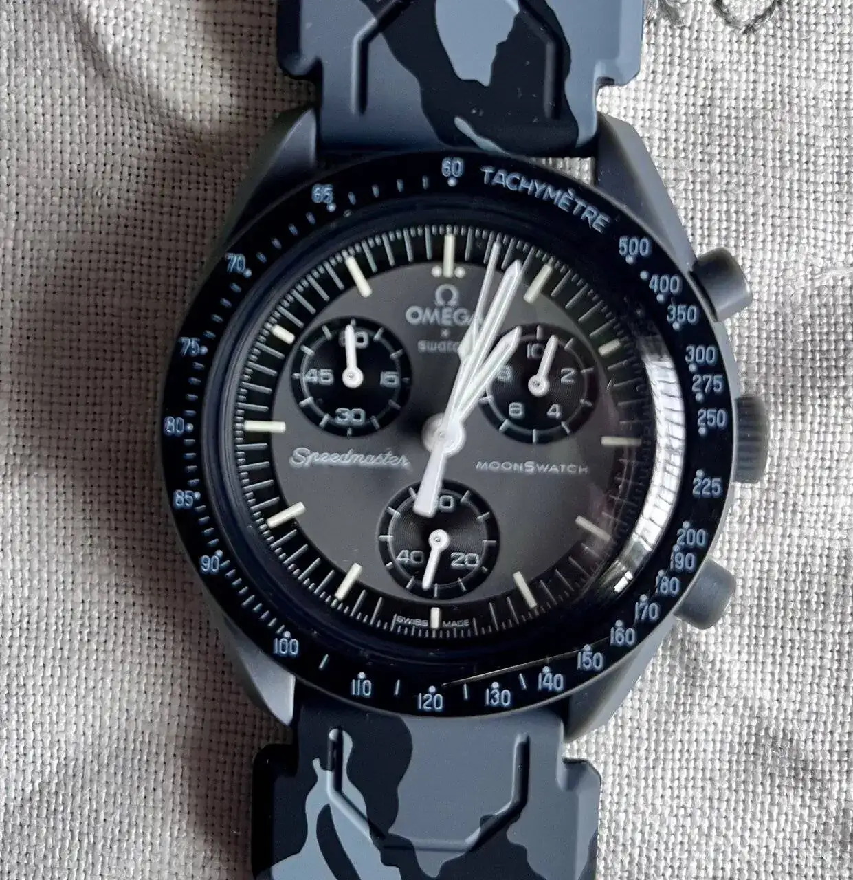 Solo unos días de puesta y cambiado por una correa de silicona de camuflaje gris que en mi opinión queda muy bien, la original de Velcro está por estrenar.