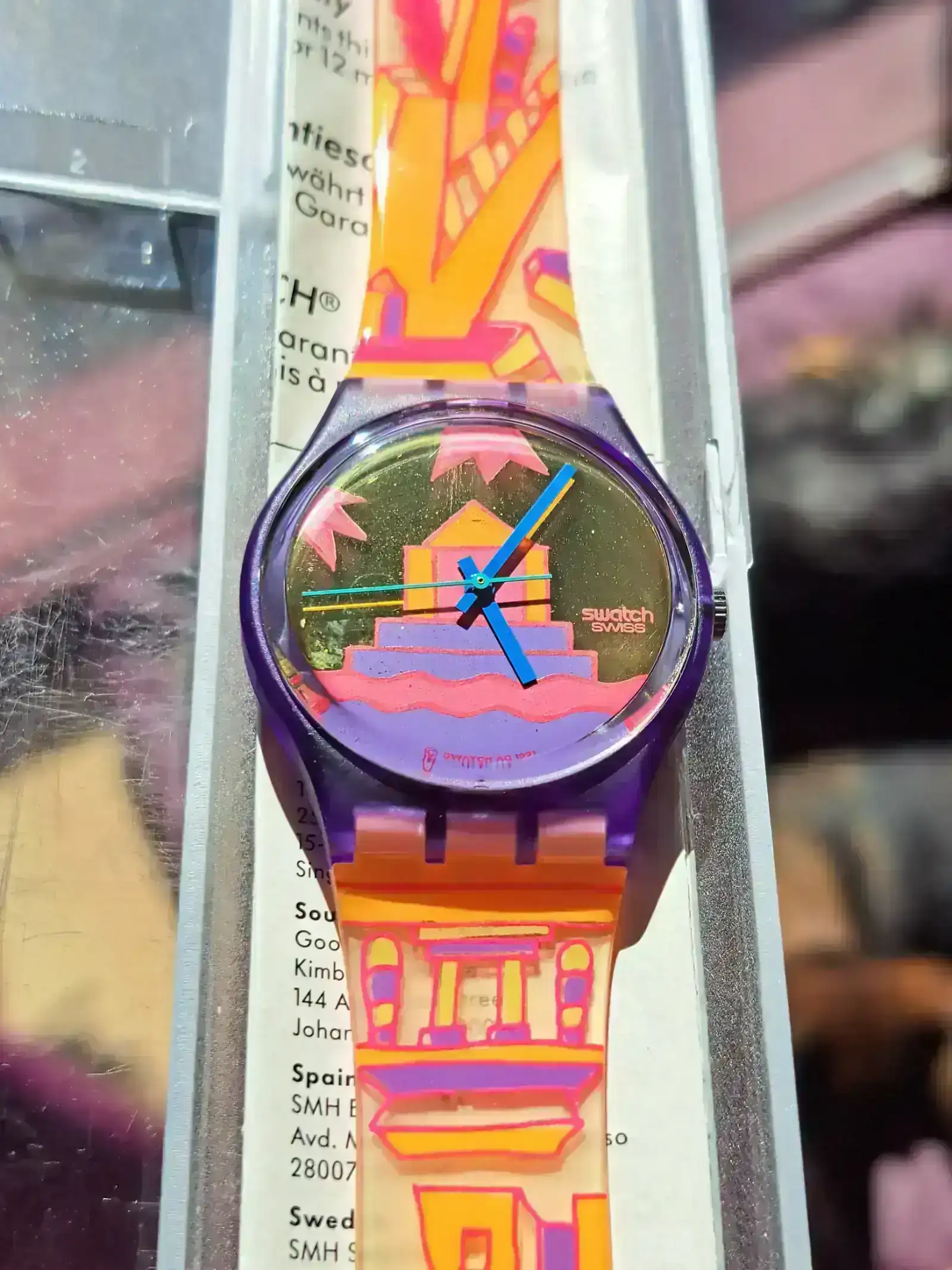 Aviso, voy a presentar un reloj que he recibido hace poco, que viene del año 1991, que no se puede poner porque la correa no tiene pintar de aguantar un solo doblado, pero funciona y no es un Swatch cualquiera.