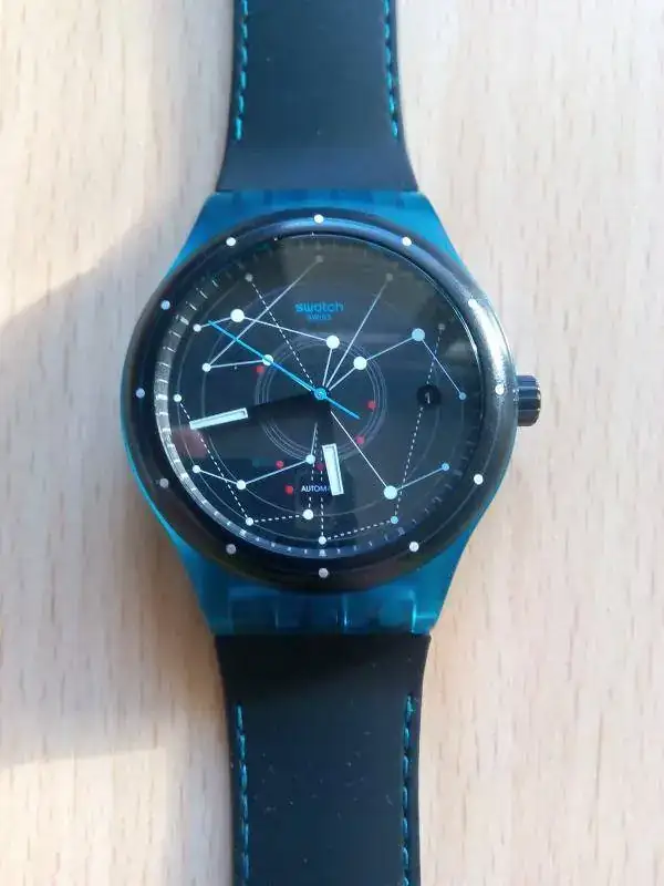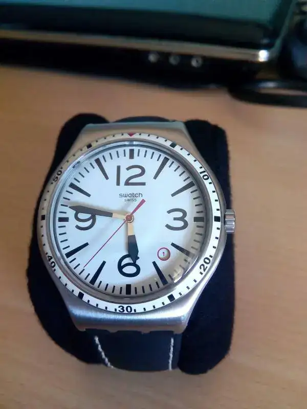 Hola: Vendo este modelo automático. Lo de la reserva de marcha es cierto, al menos yo lo he visto haciendo más de 60 horas. Estéticamente esta muy bien sólo pudiendo decir que tiene algún brillo en la correa donde se junta la hebilla. Tengo su caja original de Swatch su documentación. De regalo otro Swatch con caja de acero y también su caja y documentación. 99 euros con envío por correo certificado incluido. Cualquier cosa por privado. Saludos.