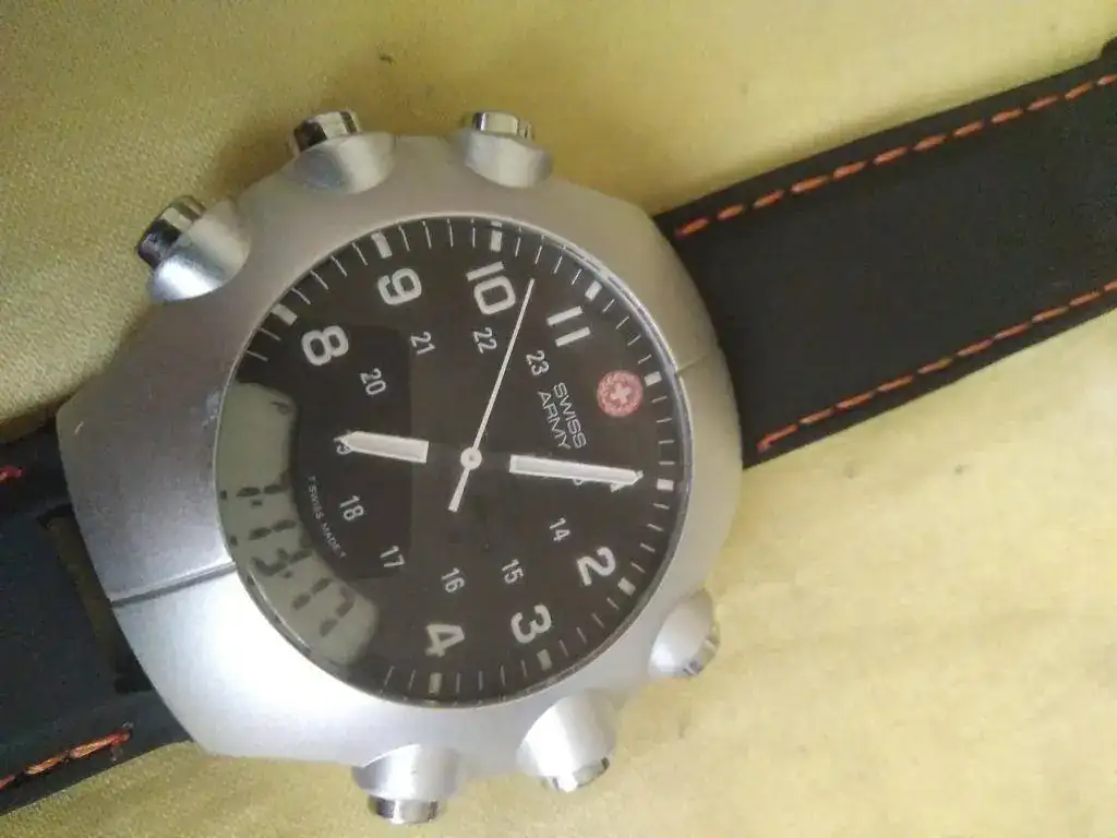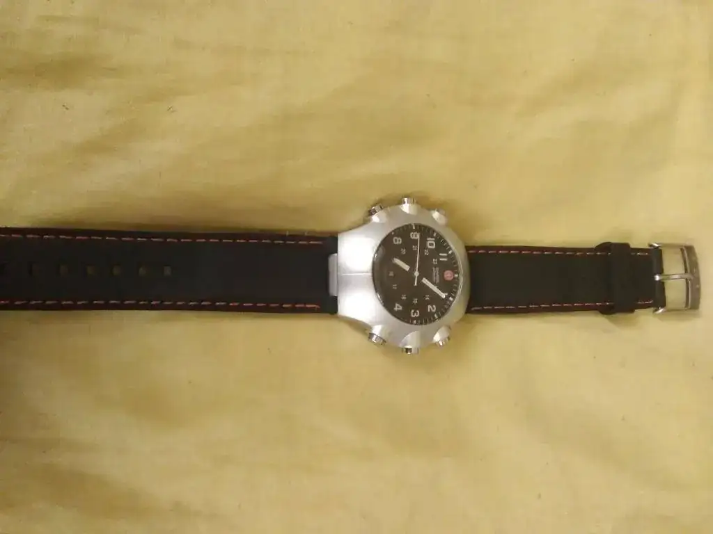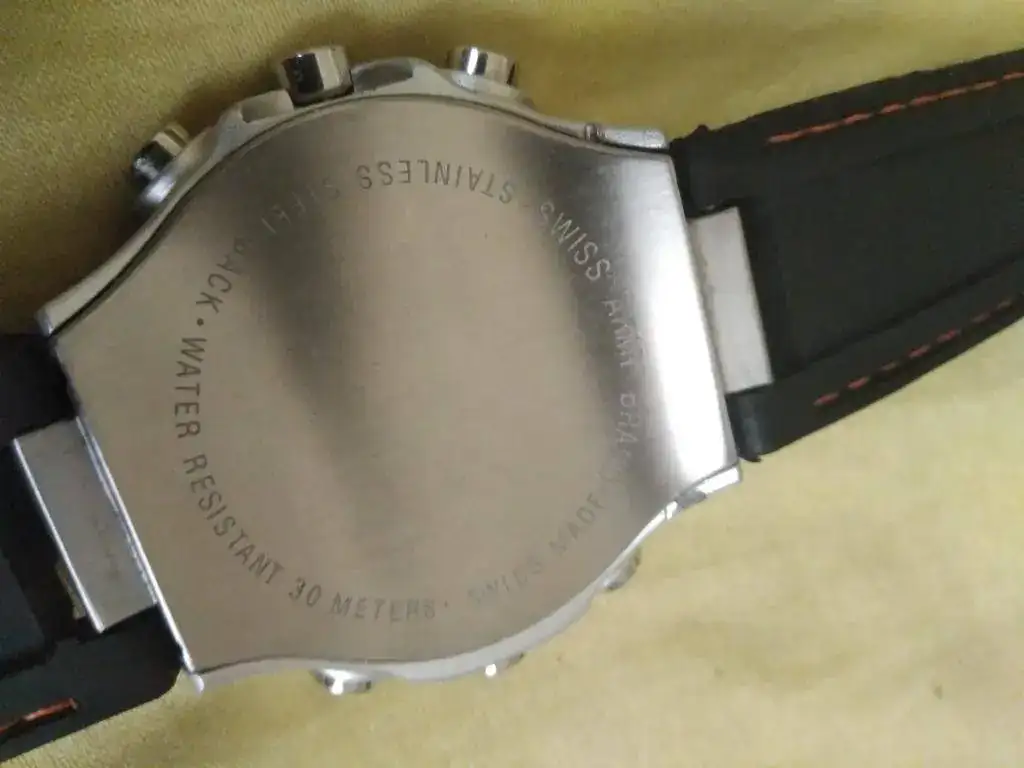 Ofrezco este Swiss Army con doble sensor , ana-digi funcionando peféctamente. Correa nueva de caucho con pespunte naranja no original, pero la hebilla si es original: