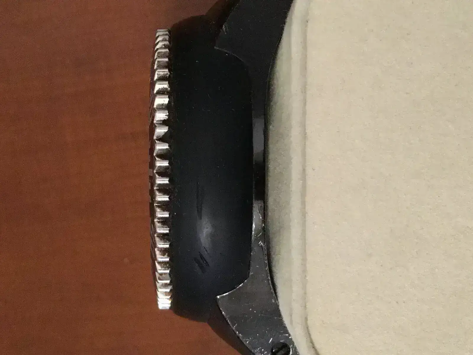 Pues me estreno en esta sección del foro, sacando a la venta un modelo que compré hace ya unos años, sin ni siquiera fijarme en su tamaño (¡ay, la juventud!) y que a mi muñeca de 16,5 no le va para nada; por lo que hace tiempo que no me lo pongo. Las fotos no son lo mío, disculpad su calidad. Como podéis observar en las mismas, el bisel (unidireccional) refleja marcas de uso, así como la trasera. Gracias por vuestro interés, y al foro por darnos este rinconcito.