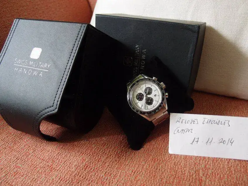 Vendo este bonito Chrono, estilo panda, Swiss Military Hanowa Chrono Pro, puedo afirmar que se encuentra en un estado impecable, 99%, puede tener 15 puestas. No tiene ningun arañazo ni nada por el estilo, dijeramos de reestreno. Todo su armis, caja y papeles.