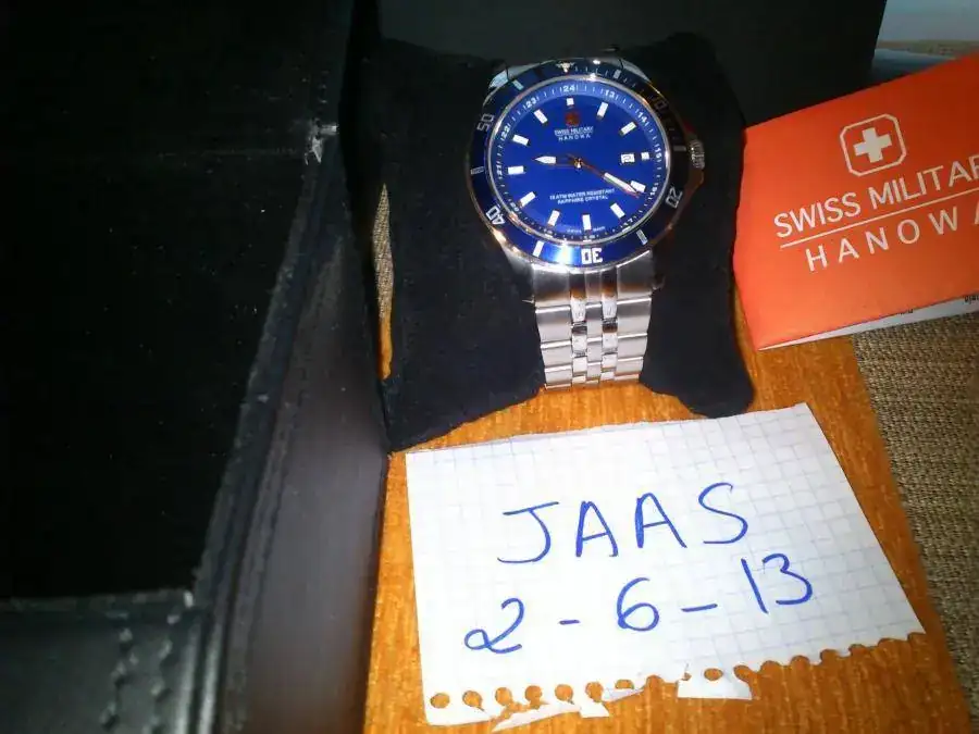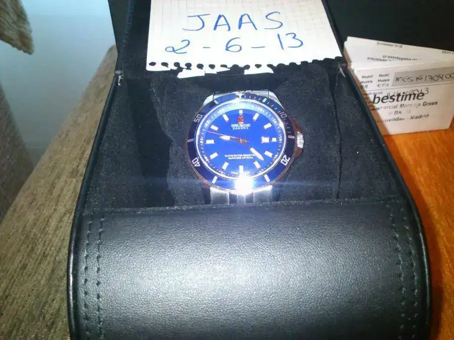Pues eso vendo este Swiss Military apenas sin uso aun conserva la pegatina trasera es decir que el reloj no presenta marca alguna esta de reestreno decir que el reloj viene con toda su dotación caja exterior de cartón e interior en perfecto estado algunas características: 42 mm de caja,22 mm entre asas 100 mm, cristal de zafiro calibre suizo de cuarzo ideal para el veranito el precio que le pongo es de 130€ envío a cargo de el comprador por la modalidad que prefiera y ahora unas fotos gracias por llegar hasta aquí y a RE POR EL ESPACIO OFRECIDO.