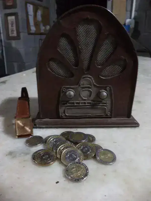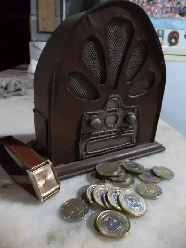 Lo que estoy pidiendo es difícil, pero no imposible. La verdad es que yo podría estar un año sin comprar ninguna de esas cosas, aún a costa de golpearme la cabeza contra un poste de luz de la insoportable ansiedad ¡¡¡ amo los zapatos, las carteras y las botas !!! ¿ Qué clase de mujer sería yo, sino ? La tríada "ROPA-ZAPATOS-CARTERAS" es una debilidad muy femenina - y propia - que es casi intolerable superar, aunque como los deseos de viaje al paraíso de Williams es mayor a ese deber ser mujer... pues me someteré a la prohibición autoimpuesta. Ya he empezado, como verán, con alcancía, una pocas monedas y un Fero Feldmann para muñeca pobre y sin pretensiones: