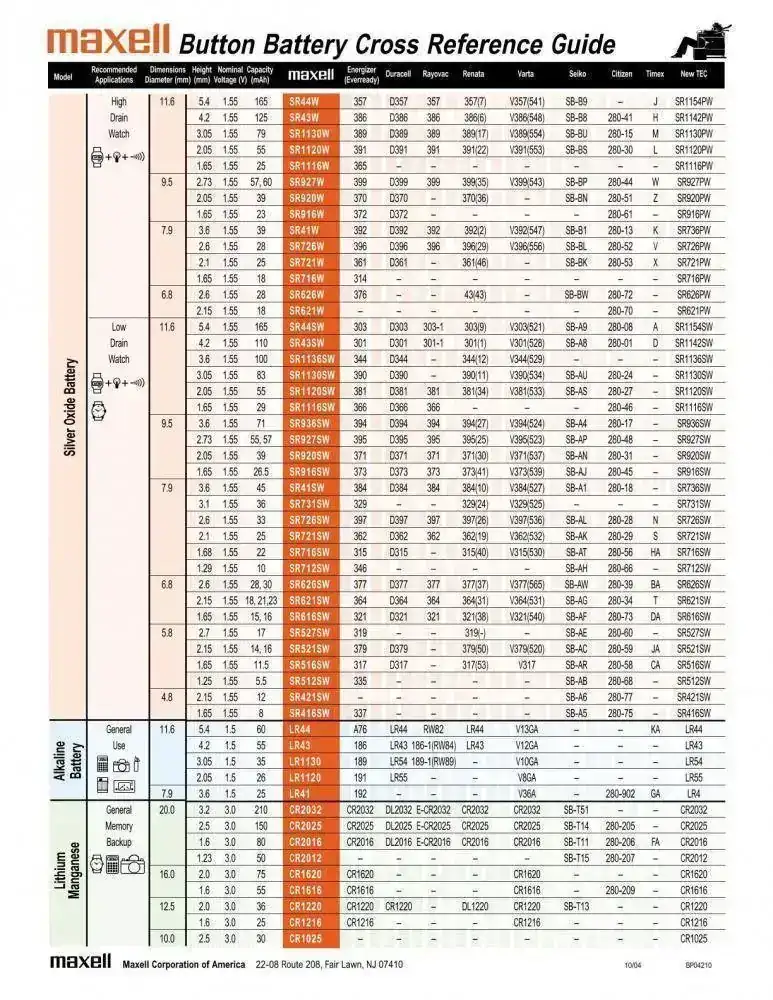 Para los que tenemos relojes de cuarzo, he dado con esta tabla que me parece utilísima a la hora de lidiar con los tipos de pilas de distintas marcas, numeraciones, códigos y demás, incluso con información interesante como la cantidad de carga en miliamperios/hora que tiene cada una de estas baterías. Llevo poco tiempo aquí y quizá ya haya circulado por el foro, en cuyo caso, mis disculpas. En caso contrario, pues eso, que me parece perfecta para consultar y aquí la dejo. Saludos!