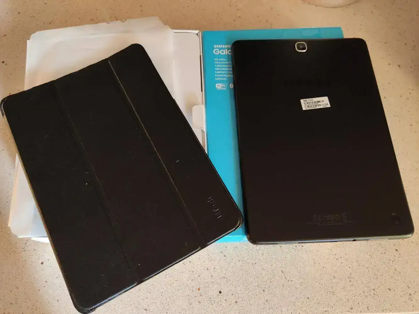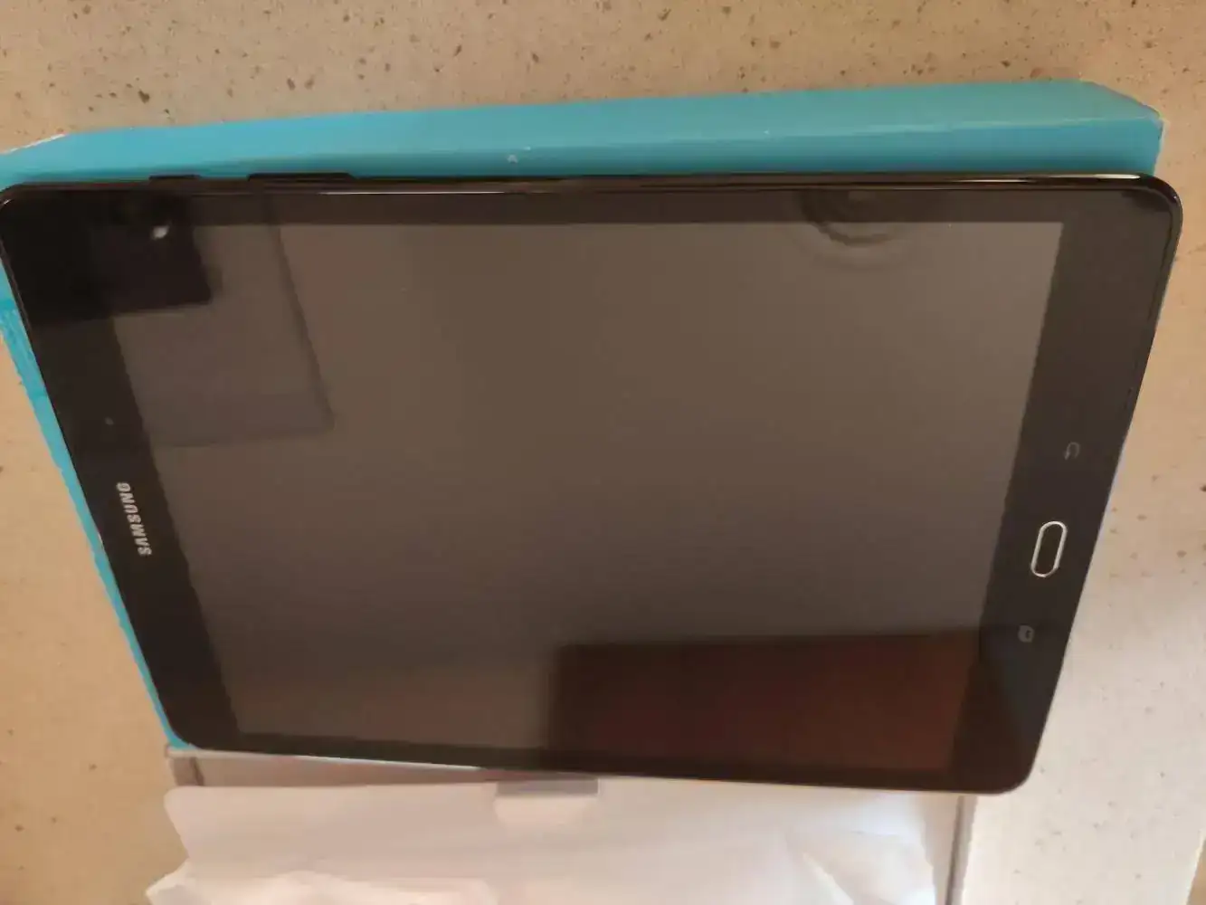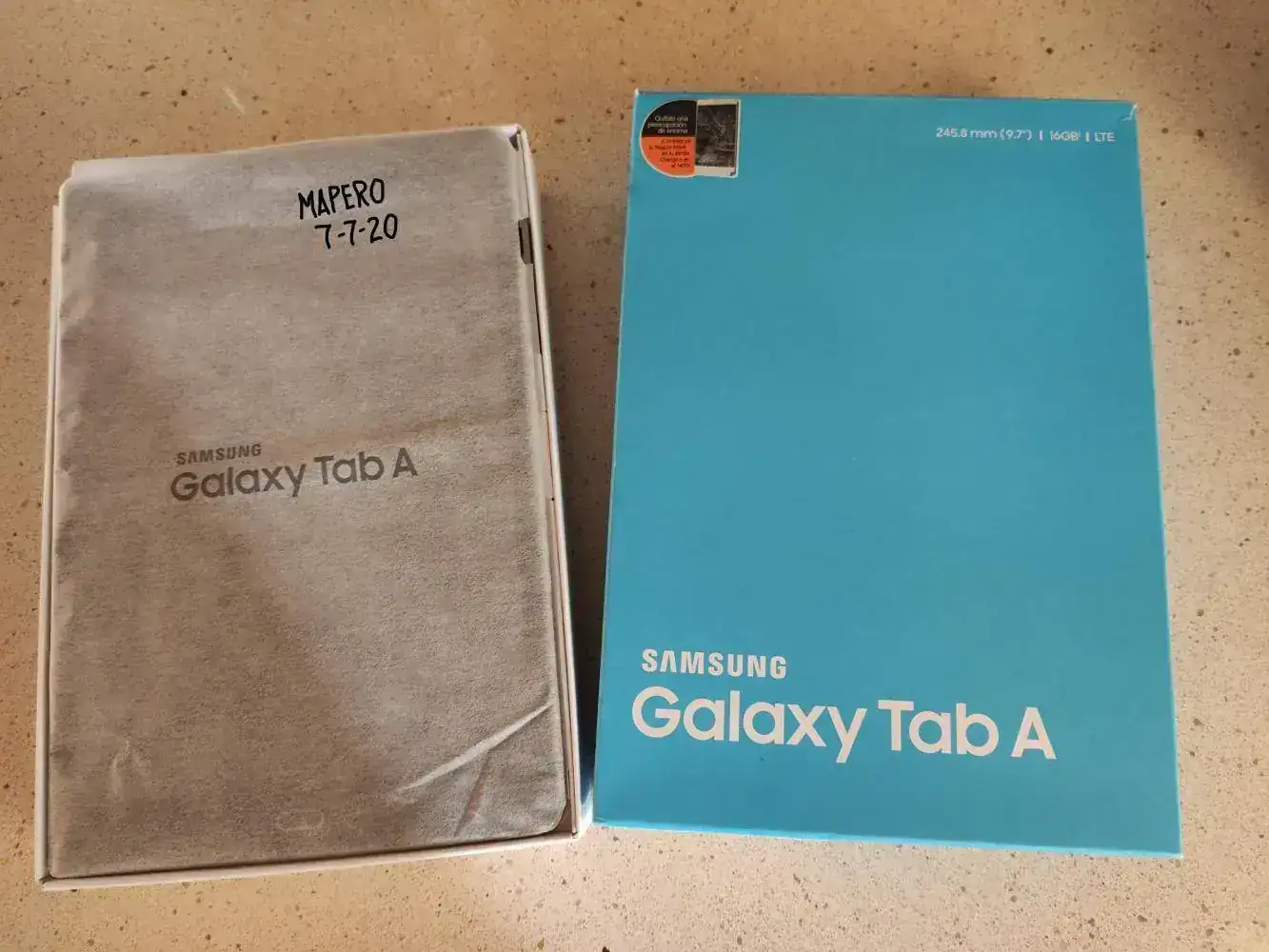 Vendo esta Tablet Samsung Galaxy Tab A de 9, 7" con 4G y WIFI con cámara trasera y delantera, batería de 6000mAh (dura bastante tiempo), la he usado muy poco y está impoluta, siempre en funda y usada en casa. Admite tarjetas microsd de 128 Gb