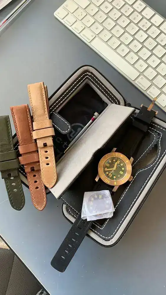 El reloj esta sin usar. A parte tiene otra esfera y 3 correas también nuevas "Jacobostraps".