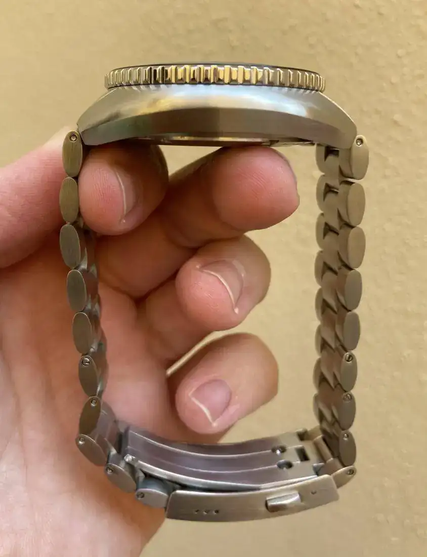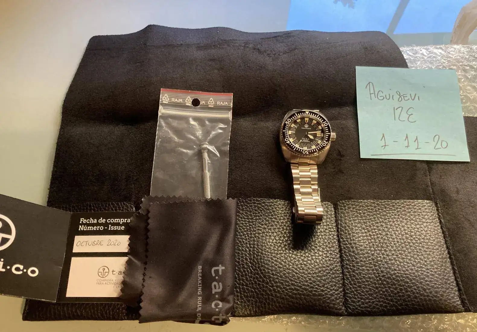 El reloj tiene bisel cerámico, cristal zafiro, 500m... un pepino en toda regla y a estrenar por ti.