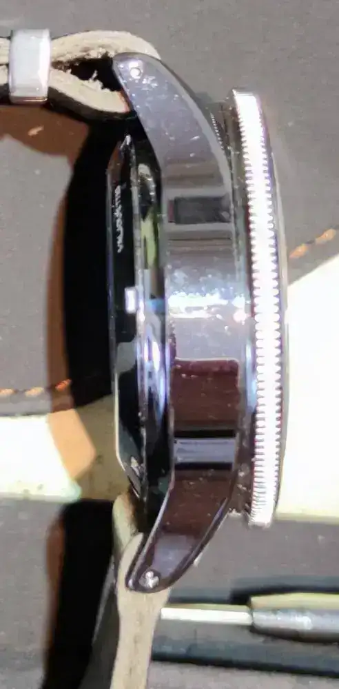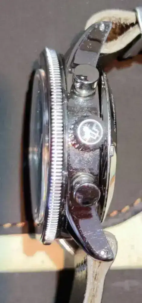 Pongo unas malas fotos , el reloj no tiene ninguna marca en cristal , ni caja salvando algun micropelillo en una asa que la verdad ni se aprecia y va perfecto de marcha.