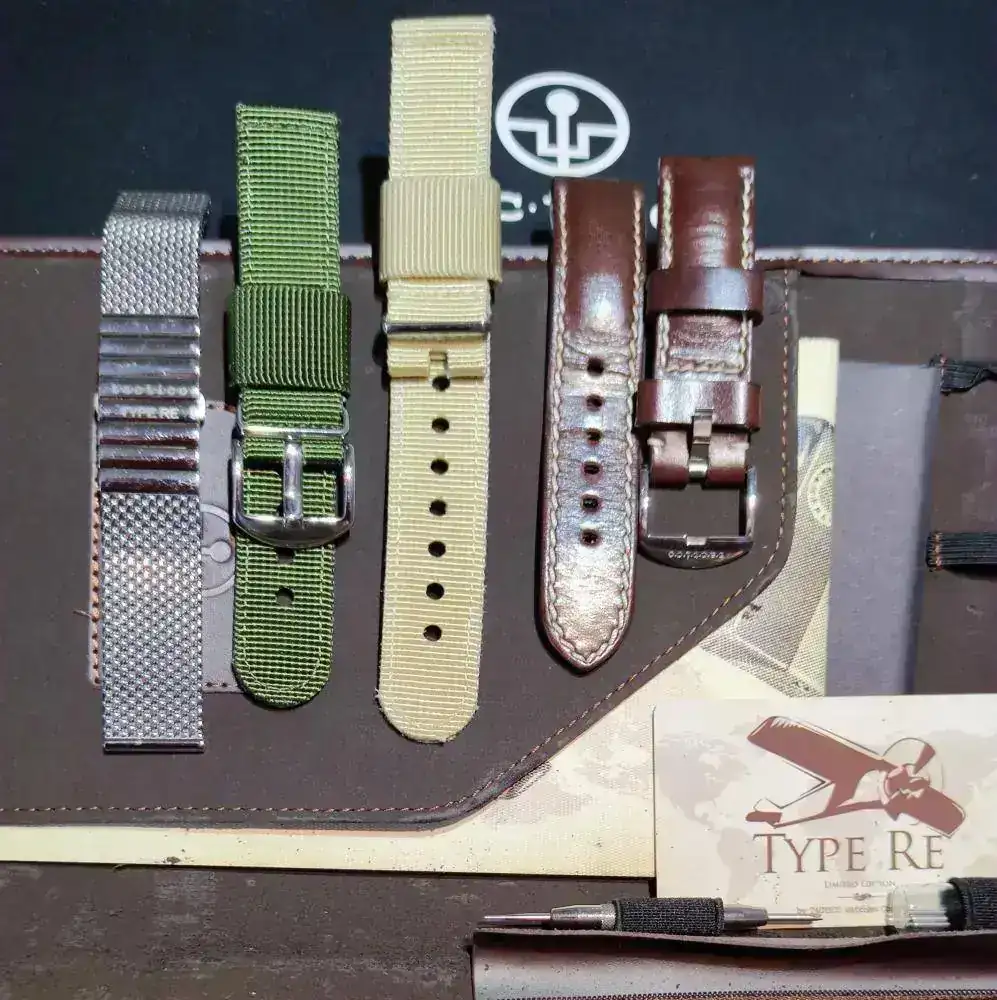 Correa: milanesa , tela beige y verde , piel de Jacob Straps y piel de DinamoStraps