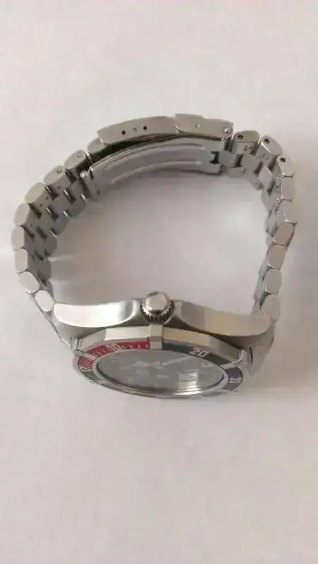 Como casi todos sabreis, se trata de un Quartz ("a pilas", vamos), 200m WR, bisel unidireccional con 60 posiciones, cristal de zafiro (que por cierto esta en perfectisimo estado, yo no le veo nada). Armis de acero en muy-muy buen estado, con holgura mínima, con bastantes eslabones sobrantes y con extensión de buceo.