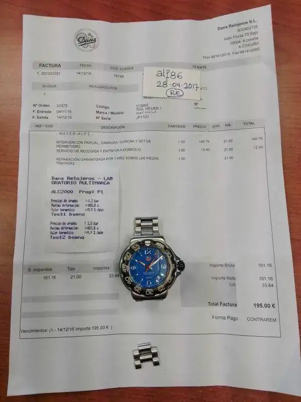 Revisado, repasado con cambio de carrura y corona. Set de hermetismo en Dans relojeros el 14/12/2016. Está en garantía hasta el 14/12 de este año. Se adjunta factura.