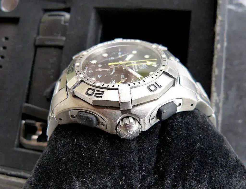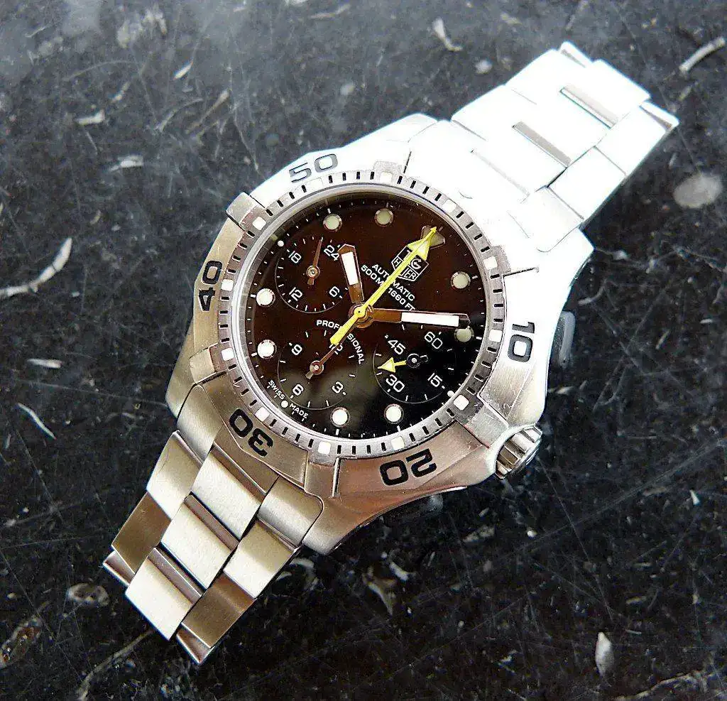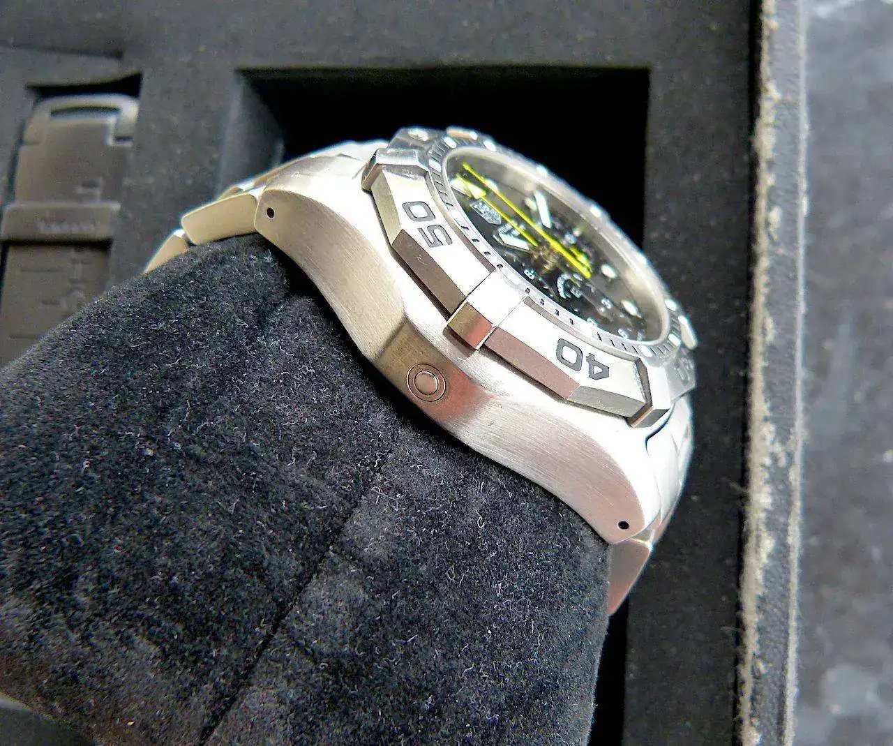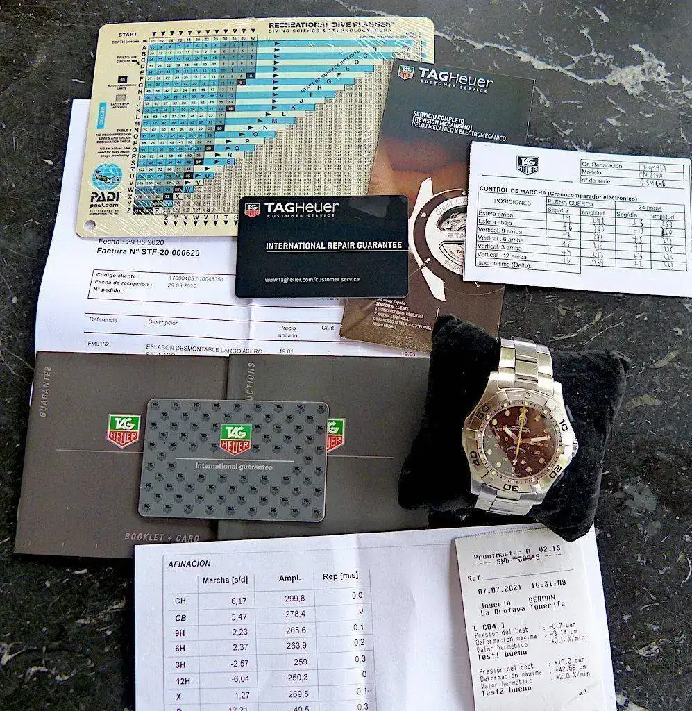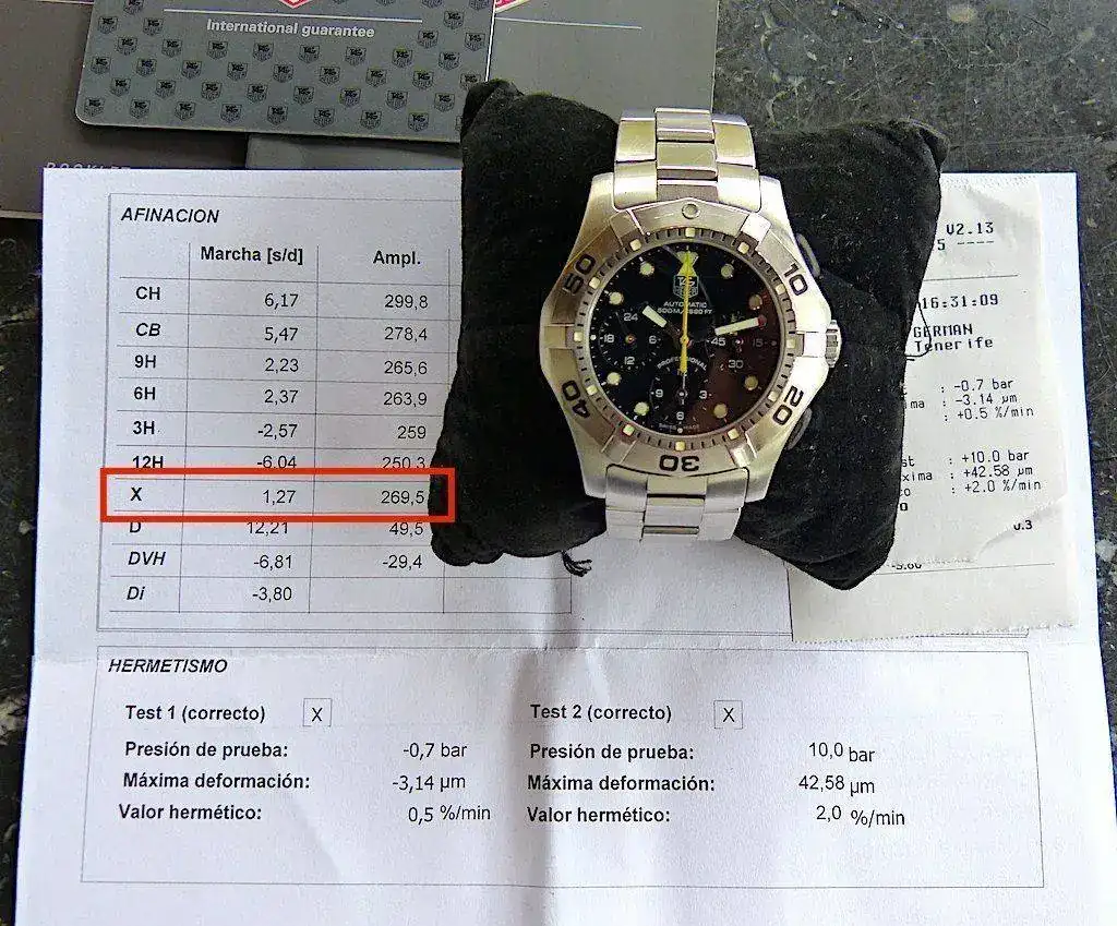 Reloj usado en muy buen estado general con marcas de uso leves. Se revisó en taller oficial en 2017 y en 2021 se volvió a ajustar de marcha y hacer impermeabilidad. Lleva set completo incluyendo caja, tarjeta de garantía y tarjeta de revisión, caucho con extensión de buceo, herramienta, manual y tabla de descompresión PADI.