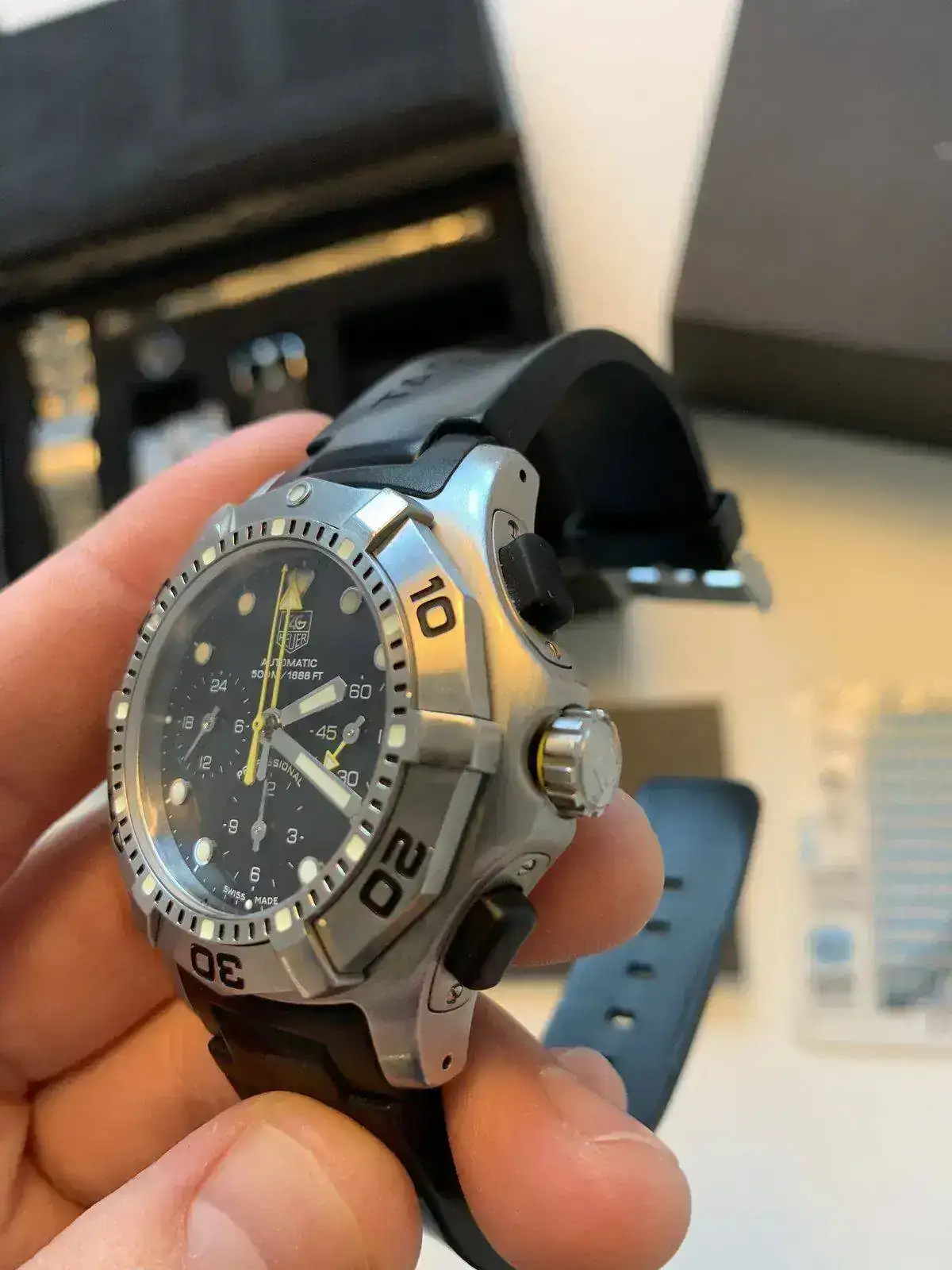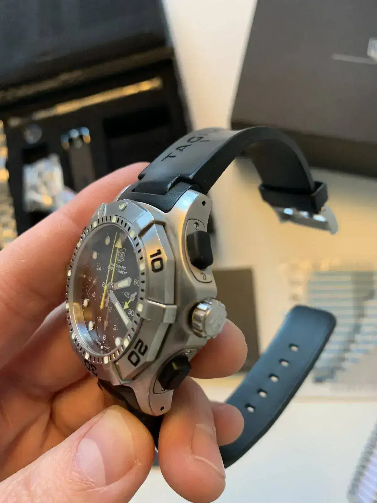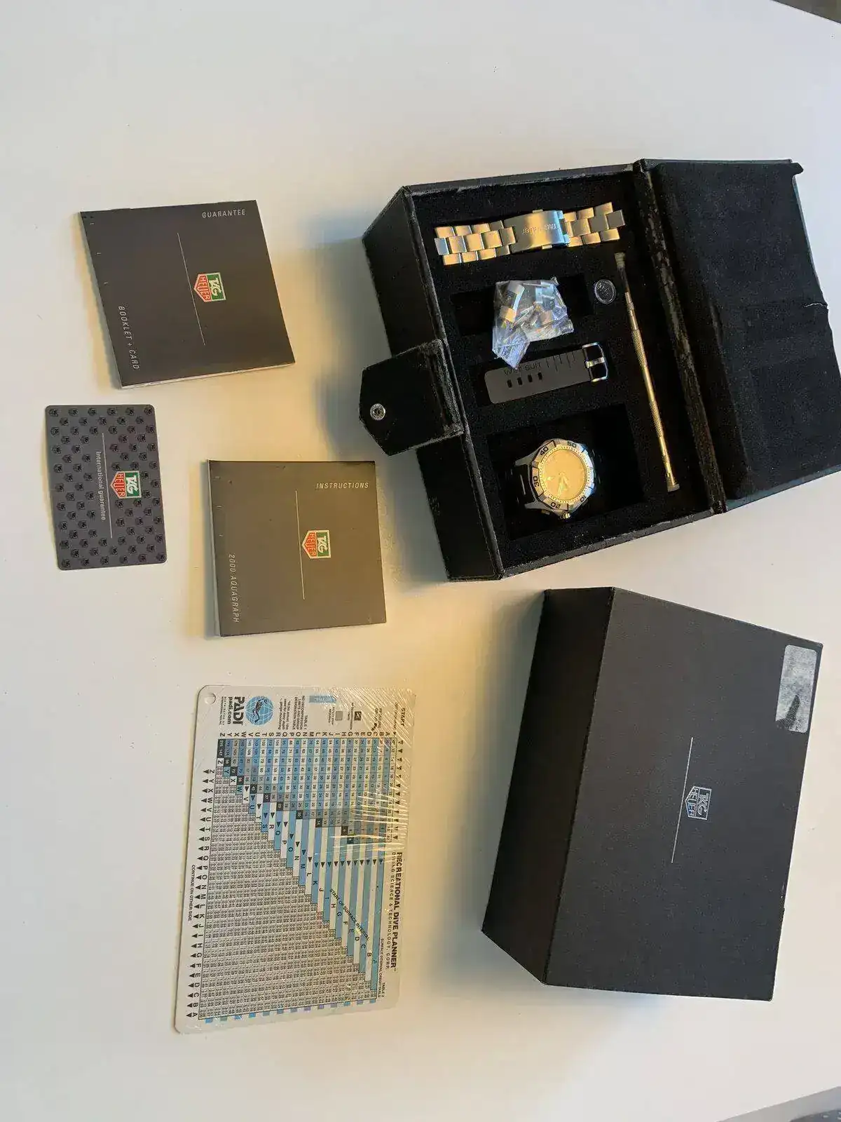 Tag Heuer 2000 Aquagraph. Diver clásico. Muy buen estado. Pulsadores de goma impecables. Correa caucho al 80%. Armis original en un estado buenísimo. Por supuesto dotación completa y con el matiz de ser la edición especial con tabla de descompresión y demás...
