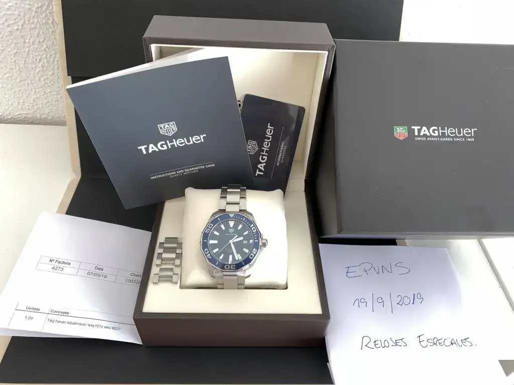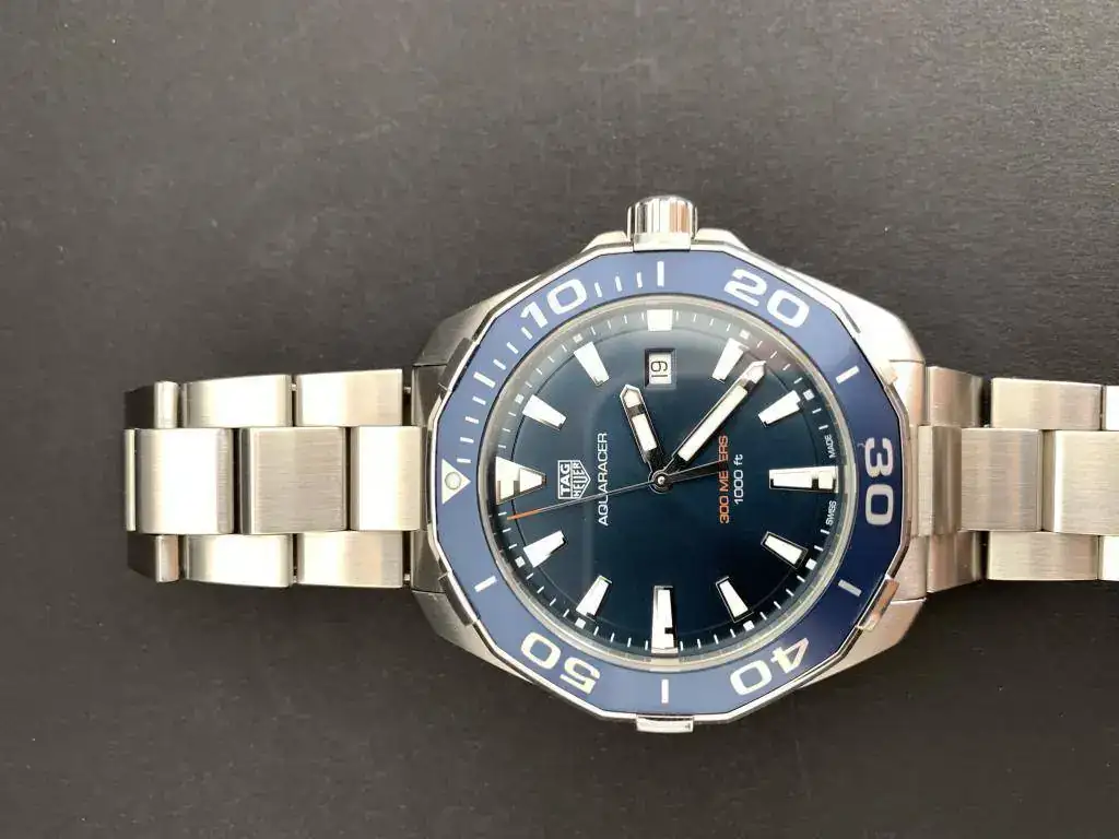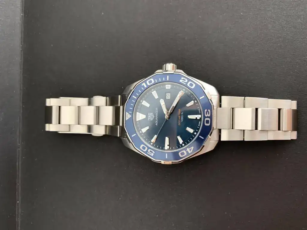 Saco a la venta este Tag Heuer Aquaracer 300M de cuarzo, comprado por mi en mayo de este mismo año 2019. El reloj se encuentra en perfectas condiciones a parte de algún pequeño pelito a causa del uso diario (veréis el estado en las fotos). Es el hermano mayor, el de 43mm y con bisel de aluminio azul y esfera del mismo color. A destacar el color naranja de la inscripción