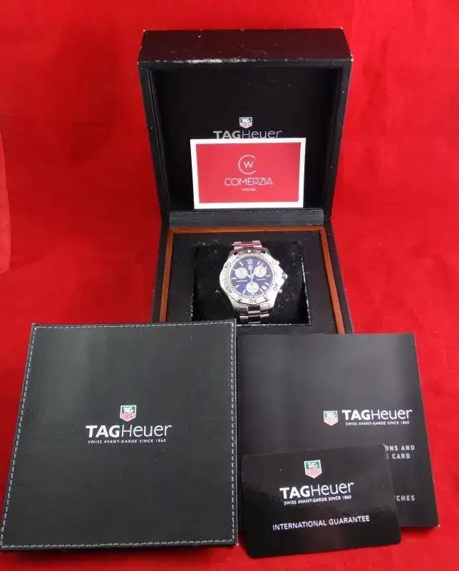 Proponemos para venta o cambio este reloj, TAG HEUER Aquaracer 300m, en su versión cronógrafo cuarzo. Se trata de un reloj muy reconocible, de una serie muy consolidada. Un Diver en toda regla, con hermetismo a 300m, y que queda perfecto en la muñeca. Su esfera azul le da un toque más desinhibido, ofreciendo un conjunto muy llamativo.