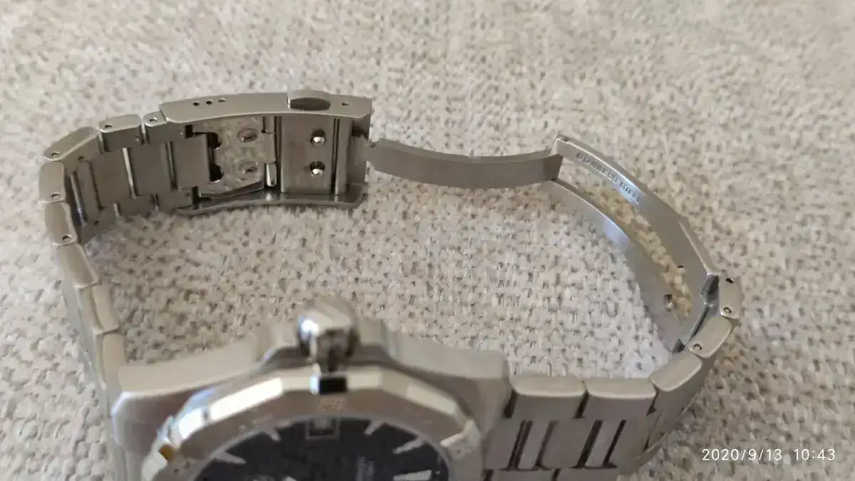 El reloj es de 2015, comprado a un compañero aquí en el foro hace escasas semanas (dejo enlace abajo), y está recién cambiada la pila y revisado, con prueba de hermetismo realizada en HoraExacta (patrocinador del foro). Yo le he dado un repaso de cepillado y demás. Está completo de cajas, documentación, tarjeta de garantía, eslabones sobrantes...