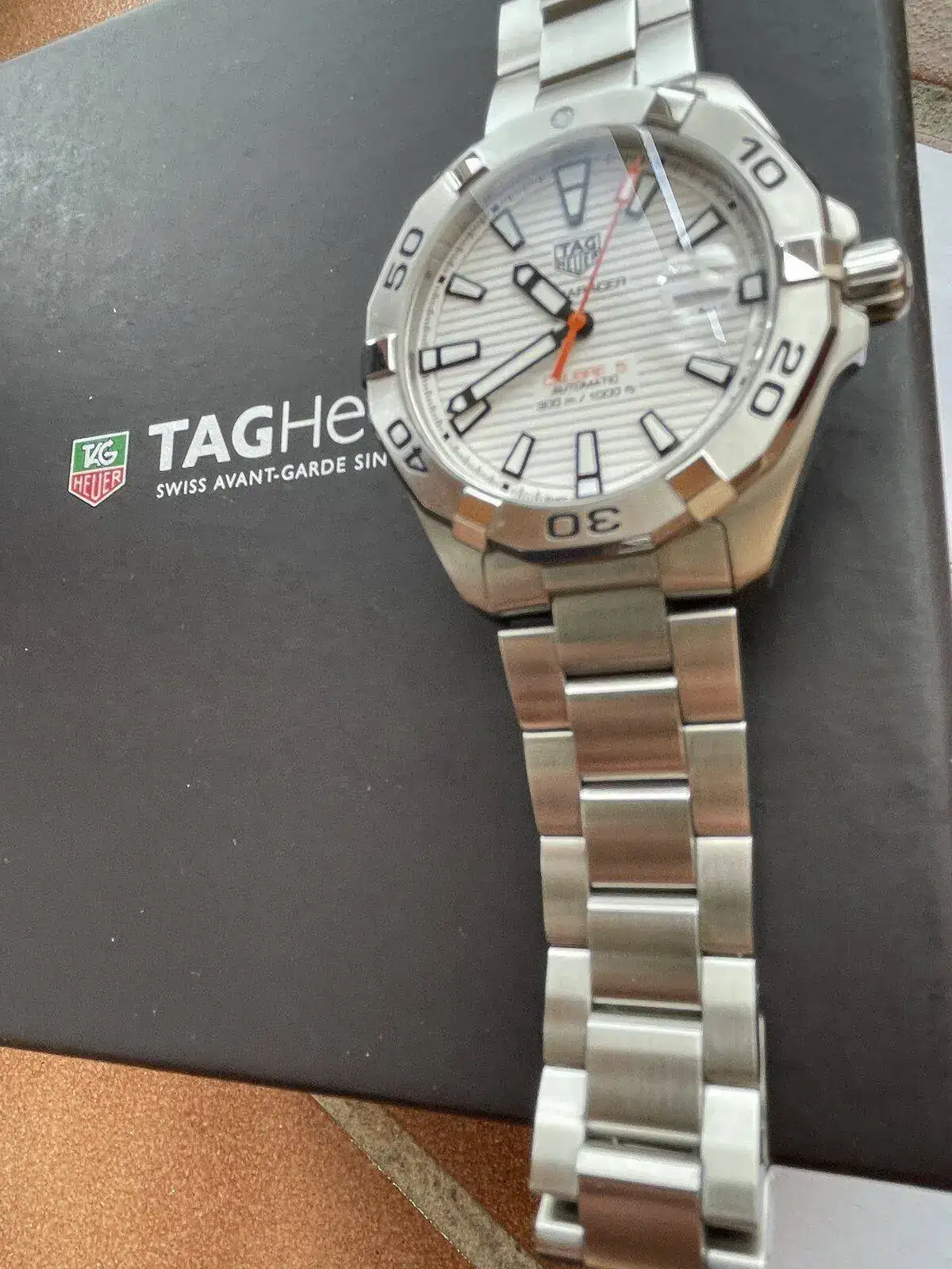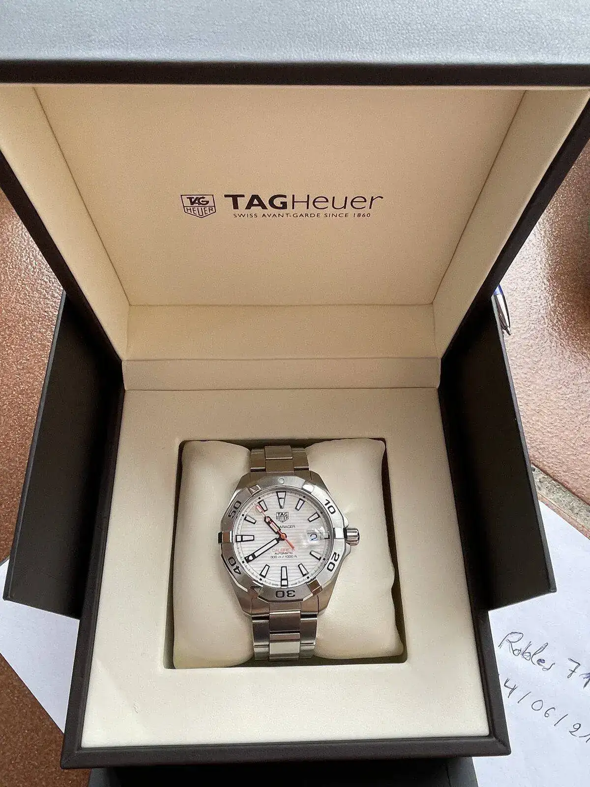 Saco a la venta este Tag Heuer Aquaracer 41 automatico, ya dificil de encontrar porque creo que ya nada mas que fabrican los de 43 mm que para muchas muñecas se hace grande.