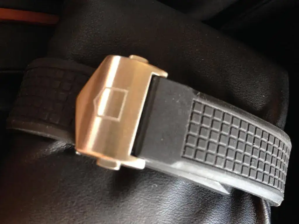 El reloj está perfecto, sin rayas, sin golpes, set completo, armis sin estrenar y caucho igual que nuevo, sin roces en el deplo.