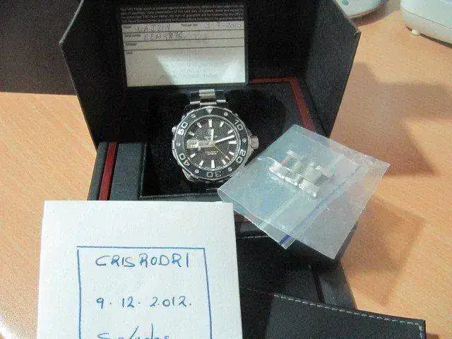 .Se trata del Tag Heuer Aquaracer 500 metros con armis y de esfera y bisel negro. Combina en su armis y su caja el acero de espejo y mate, lo que le da un toque de elgancia a un reloj deportivo. A destacar: