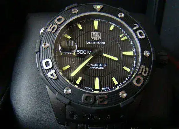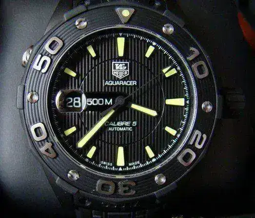 CAMBIO mi Diver Tag Heuer Aquaracer 500M Calibre 5 "Full Black" , de 43 mm. , este reloj pertenece a una SOLA tirada de un modelo que se hizo todo en negro, incluida la maquinaria y que hoy ya se encuentra DESCATALOGADA.