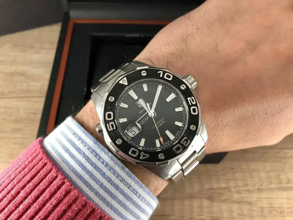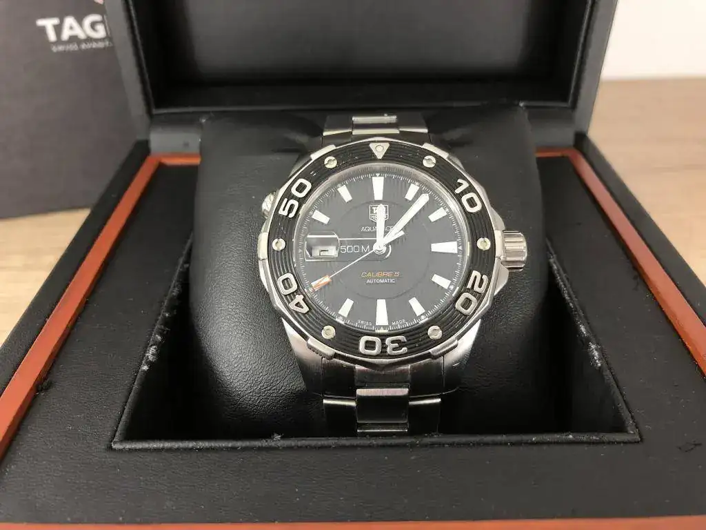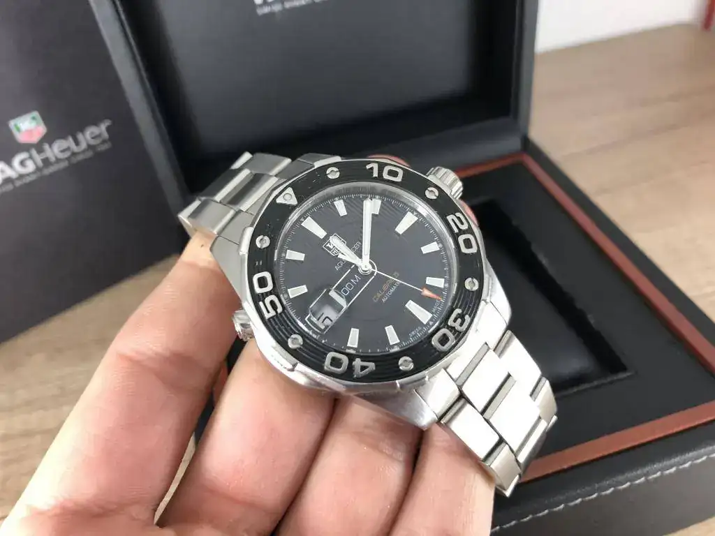 Buenas, saco para la venta este conocido Tag Heuer Aquaracer 500 con Calibre 5. El reloj esta en buenas condiciones como vereis en las fotos, tiene caja y folletos pero le falta lo que es la tarjeta de Tag donde vienen los datos.