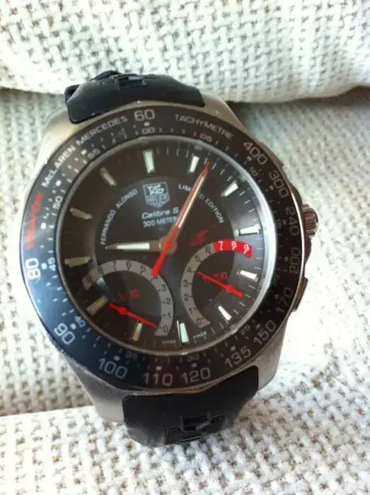 Aquí estoy de nuevo sacando a la venta esta estupenda pieza. Se trata de un Tag Heuer Aquaracer Calibre S Edición Limitada Fernando Alonso. Como es algo un tanto especial, os dejo un “copia y pega” (cosa que no sé si se puede hacer) de una página que he encontrado en internet. De todas formas, es muy fácil encontrar información de este reloj.