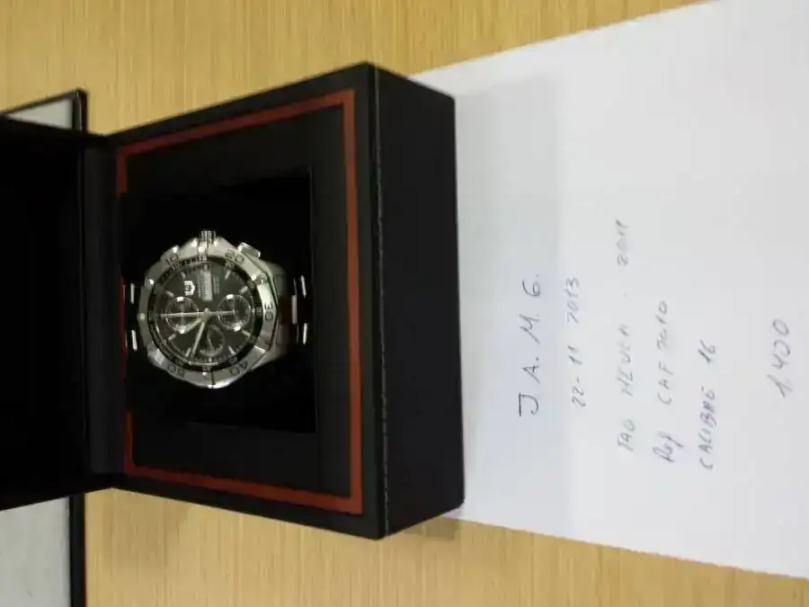 Buenos dias pongo a la venta este tag heur. En un estado 9 de 10..es del año 2011. Tiene caja pero no tengo las tarjetas garantizo su autenticidad y tambien 1año de garantia...esta en perfecto estado no tiene golpes ni rayas..su marcha esta en mas 4 seg dia.armis completo .sus medidas son 44mlm y 48.50 con corona.pido 1400eur sera para el primero que me pida el n de cta..cualquier consulta por privado o por whassapt 639888824...muchas gracias.