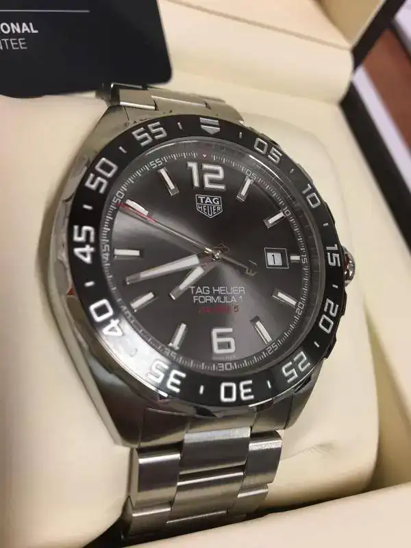 Saco a la venta este fabuloso TAG HEUER FORMULA 1 BISEL CERAMICO AUTOMATICO CALIBRE 5 (esfera antracita efecto rayos de sol), comprado en tienda física en agosto de 2017, su estado es usado pero en un estado inmejorable, no tiene golpes, ni roces.