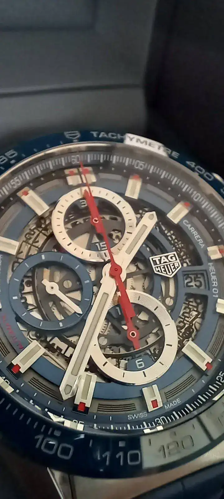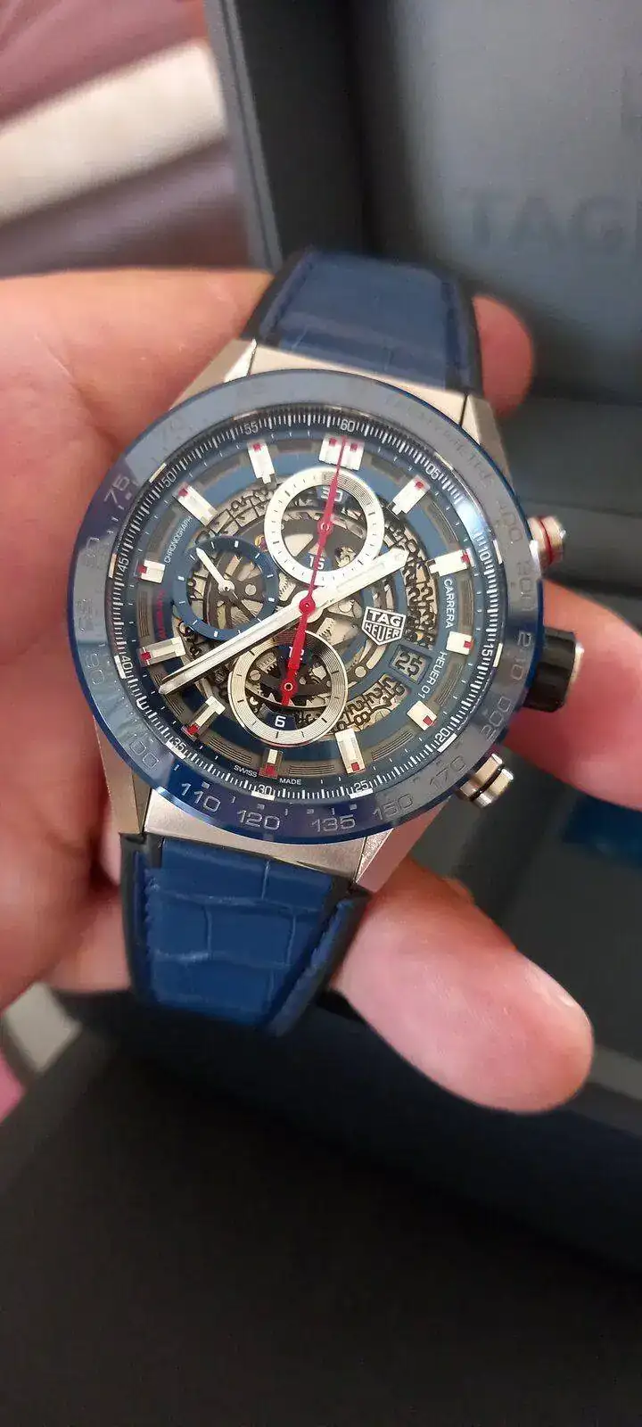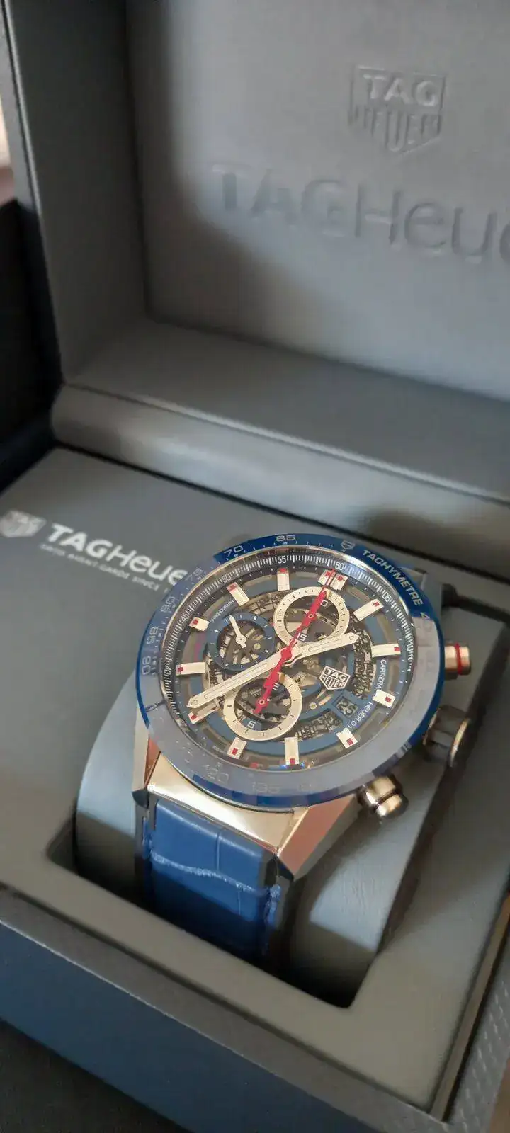 Saco a la venta este pieza con menos de dos meses y con una calidad digna de relojes que le doblan el precio. Es un tag heuer carrera 01 skeletor. Correa azul con caucho, estado impoluto sin ningún tipo de marcas y un reloj que no deja indiferente.