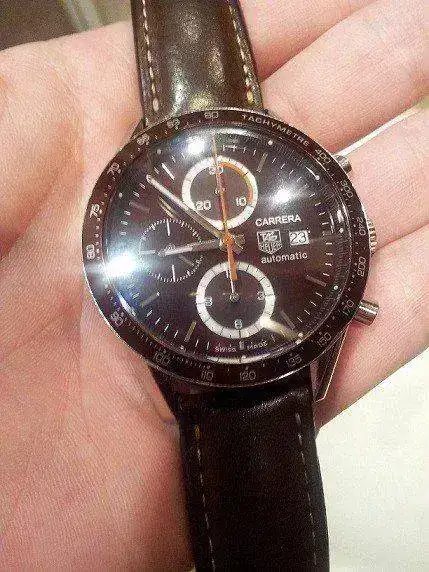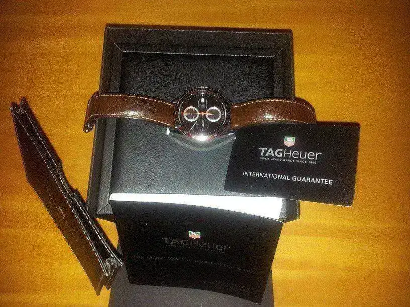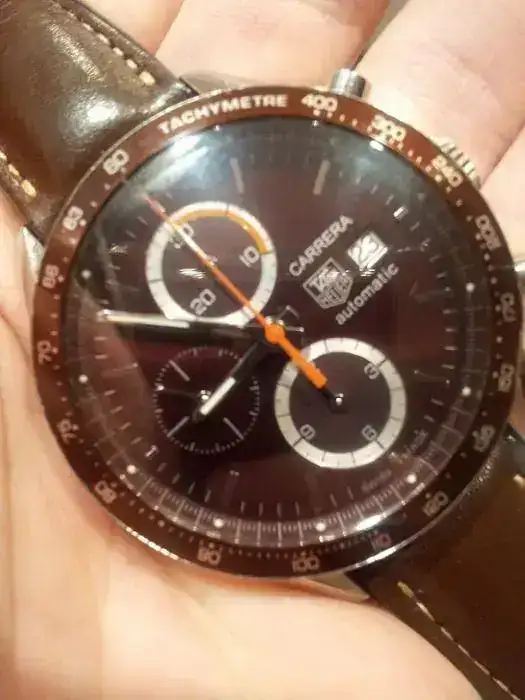 Hola compañeros, vendo este magnífico TAG HEUER CARRERA CALIBRE 16 CHOCOLATE con set completo comprado en C.O. en 2008. El reloj se encuentra en muy buen estado, marcha en COSC, único a resaltar una pequeña señal en el bisel a la altura de las 5, pero vamos puesto ni se nota, yo ni lo he cambiado vaya. La correa de piel está usada pero aún le queda vida y además la ventaja de estar usada es que ya la forma se hace a cualquier muñeca resultando muy cómoda de llevar. Las características del reloj ni las pongo ya que es de sobra conocido "EL MITO" en el foro, pero dejo el enlace a la web de Tag Heuer para quien las quiera ver: