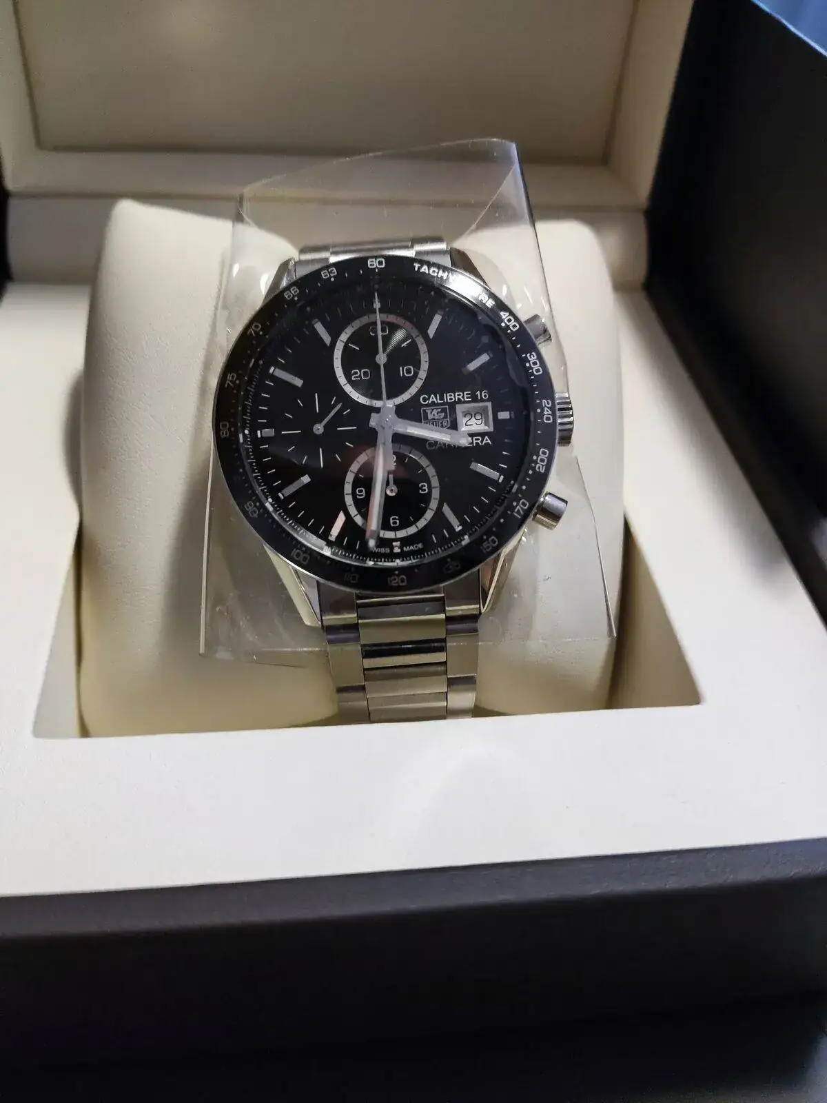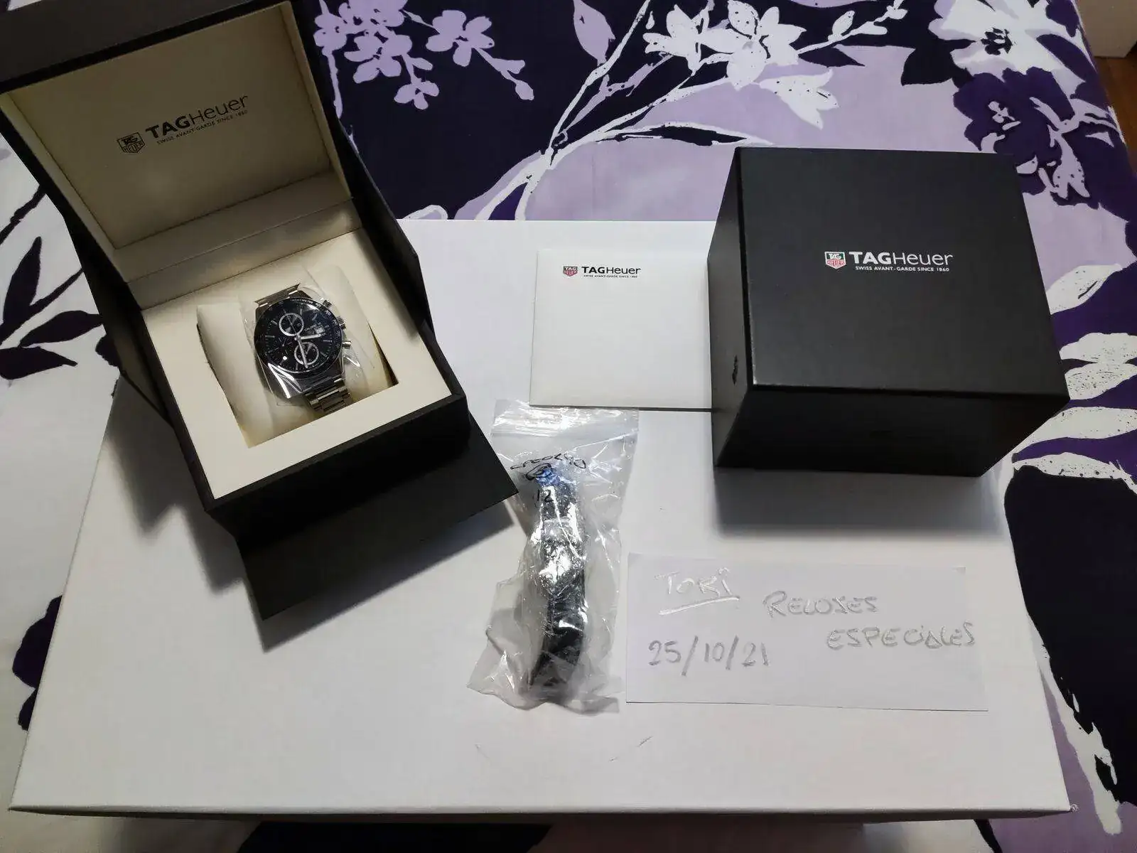 Vendo por no dar uso y empezar otros proyectos personales uno de mis relojes favoritos ( me costo lo suyo encontrarlo ) se trata del archiconocido TAG HEUER Carrera Calibre 16 con la trasera de "Fangio" , el reloj se encuentra en un estado de 10/10 , ni siquiera al armis se le puede sacar algún pero , como bien digo , el reloj viene con armis original ( para muñecas de 17,5 máximo ) y también con cuero , alomada perforada del maestro Jacobo , con hilo blanco y Deplo ORIGINAL ( aun tiene los plasticos en el interior del Deplo ) , como digo reloj en un estado impecable hoy día esta con un plástico protector en su caja , no tiene documentación como tal,pero SI tiene certificado del CO donde se certifica su numero de serie y autenticidad ( se incluye dicho certificado obviamente y la factura de la misma ) el sobre se ve en la foto del Nick , doy total prioridad al trato en mano , en caso de envío ,por cuenta y riesgo del comprador.