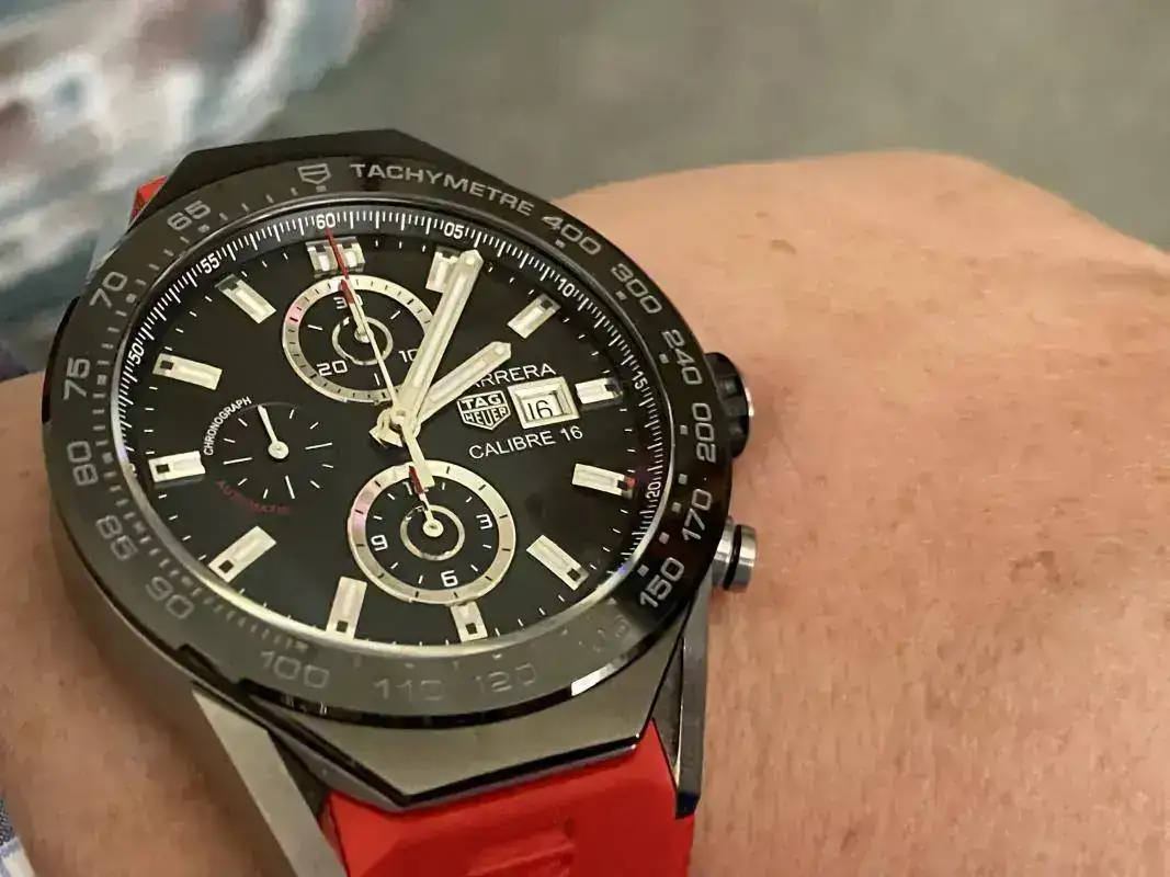 Como bien dice algún compañero con la correa de piel se ajusta mejor y para mi gusto con la correa racing es la esencia del reloj carrera. Es uno de mis futuribles