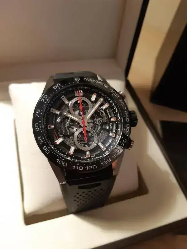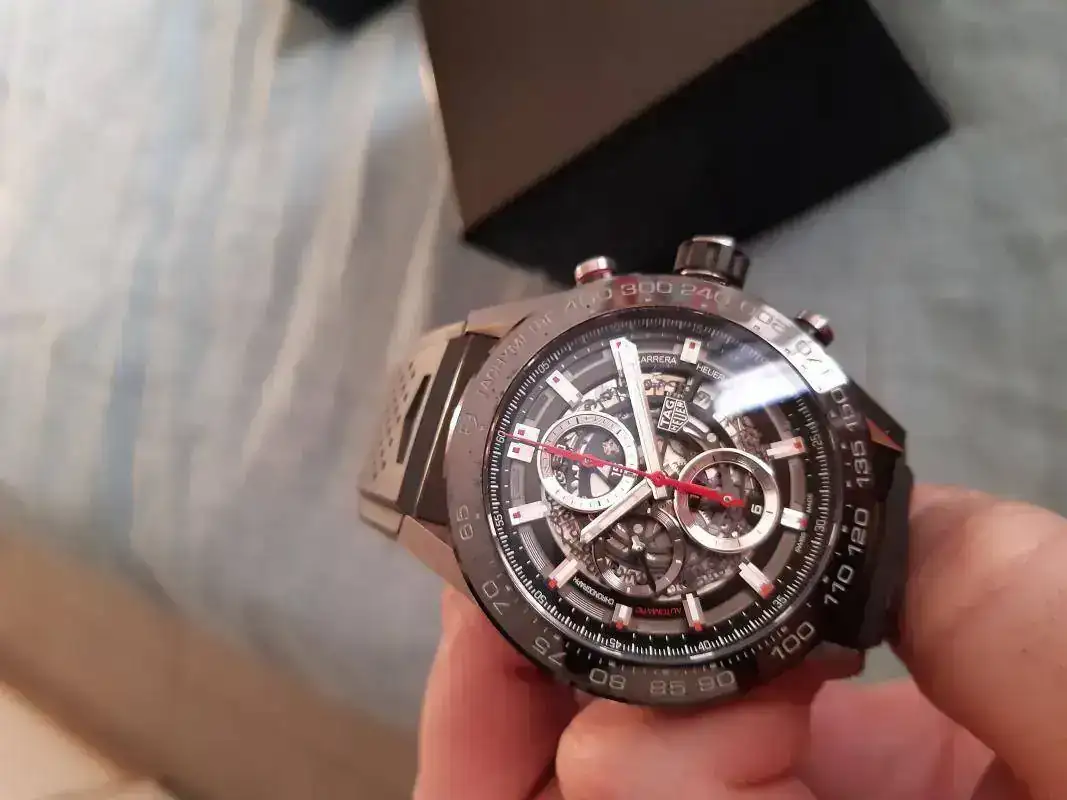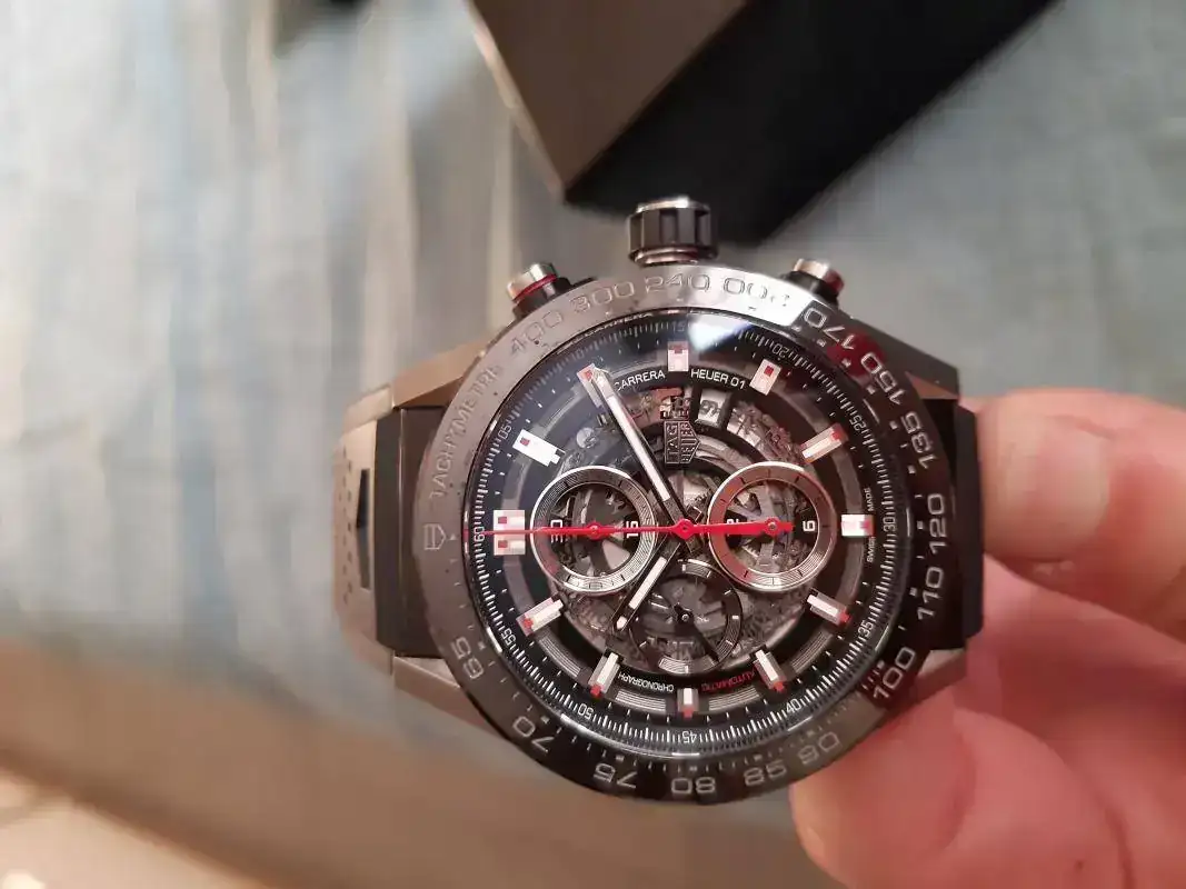 Este es el modelo Carrera Chrono 01, el denominado manufactura esqueleto, el más bonito en mi opinión y el reloj de gama "alta" que ofrece tanto (o más) que lo que otras marcas de lujo ofrecen por más del doble de lo que cuesta este.