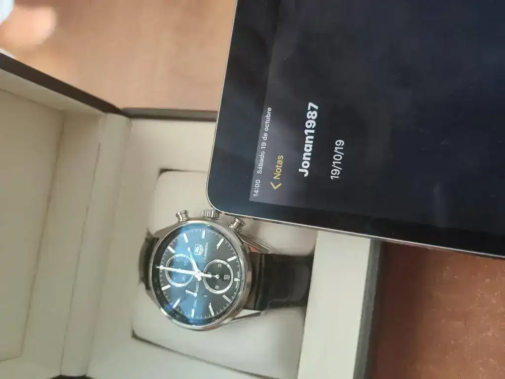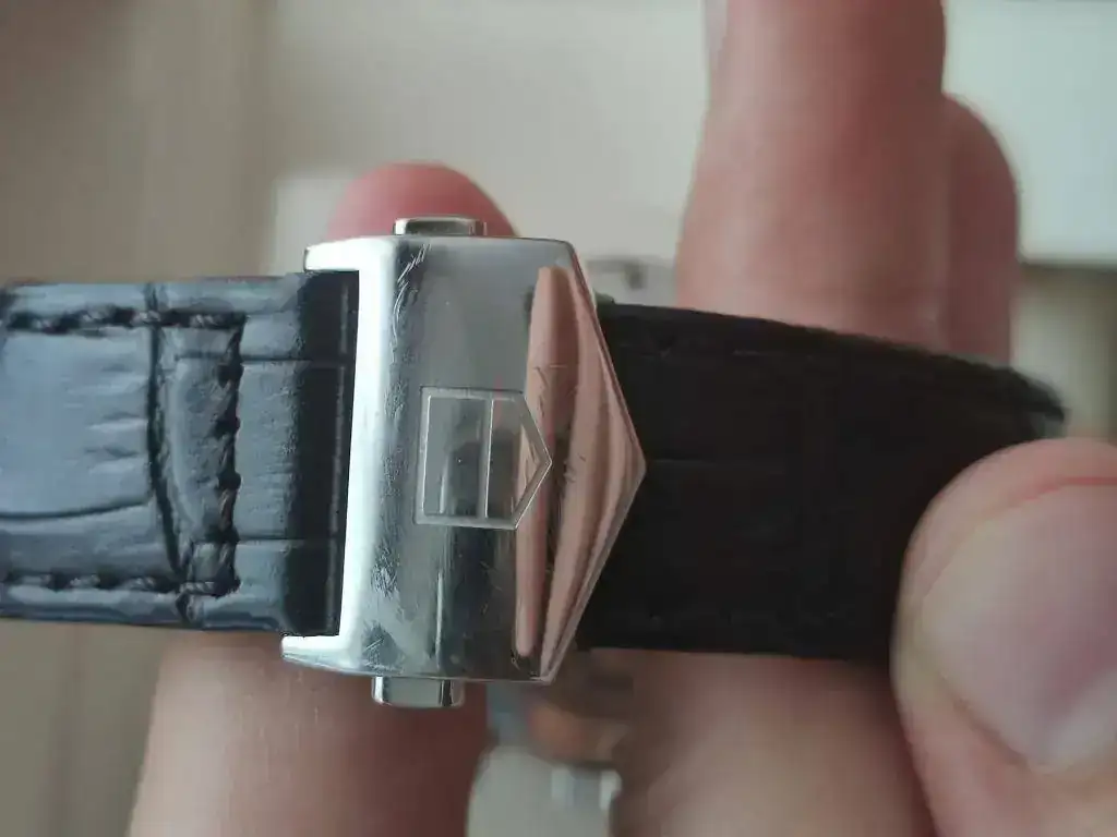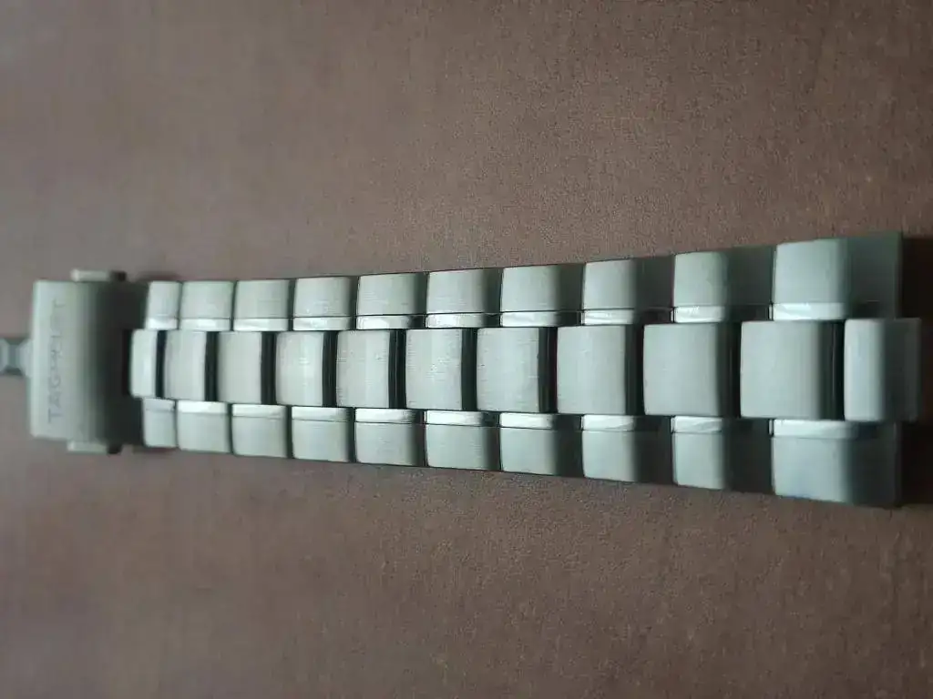 Vendo este fantástico reloj que he disfrutado una buena temporada, pero me apetece probar otra cosa y para eso hay que dar salida. Como se puede ver en las fotos a continuación, el estado del reloj es muy bueno aunque ha tenido uso. Al estar la caja completamente pulida a espejo, todos sabemos lo que pasa, y tiene alguna marca. El brazalete de acero apenas ha tenido uso y su estado es fantástico, la correa de piel esta en buen estado y le queda mas de un 80% de vida, y el deployante para la correa de piel es el original de Tag Heuer, y si que tiene marcas típicas de apoyarlo contra la mesa al teclear.
