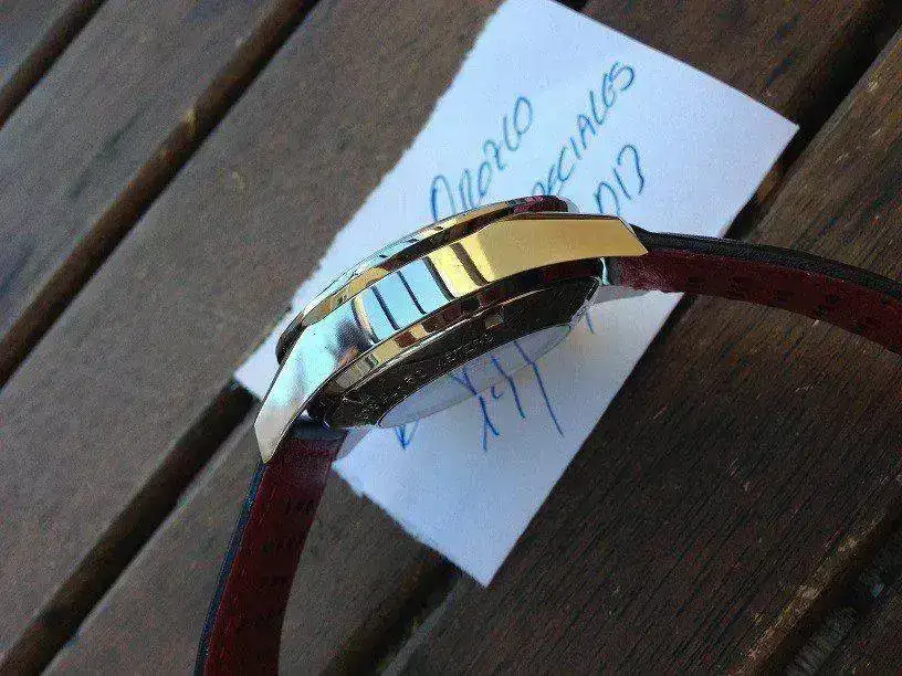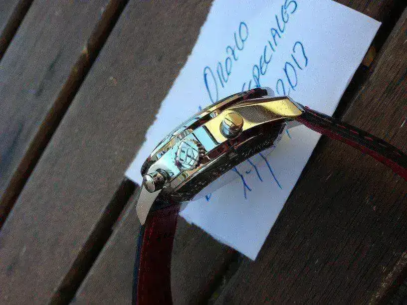 En muy buen estado, las minimas marcas de uso de un reloj nunca pulido y que no lo necesita, el macro del telefono es muy exagerado...