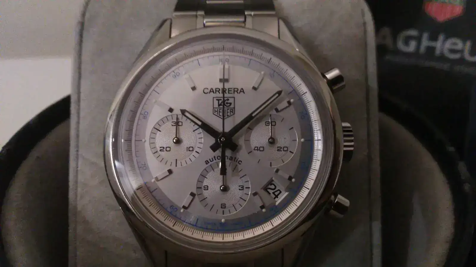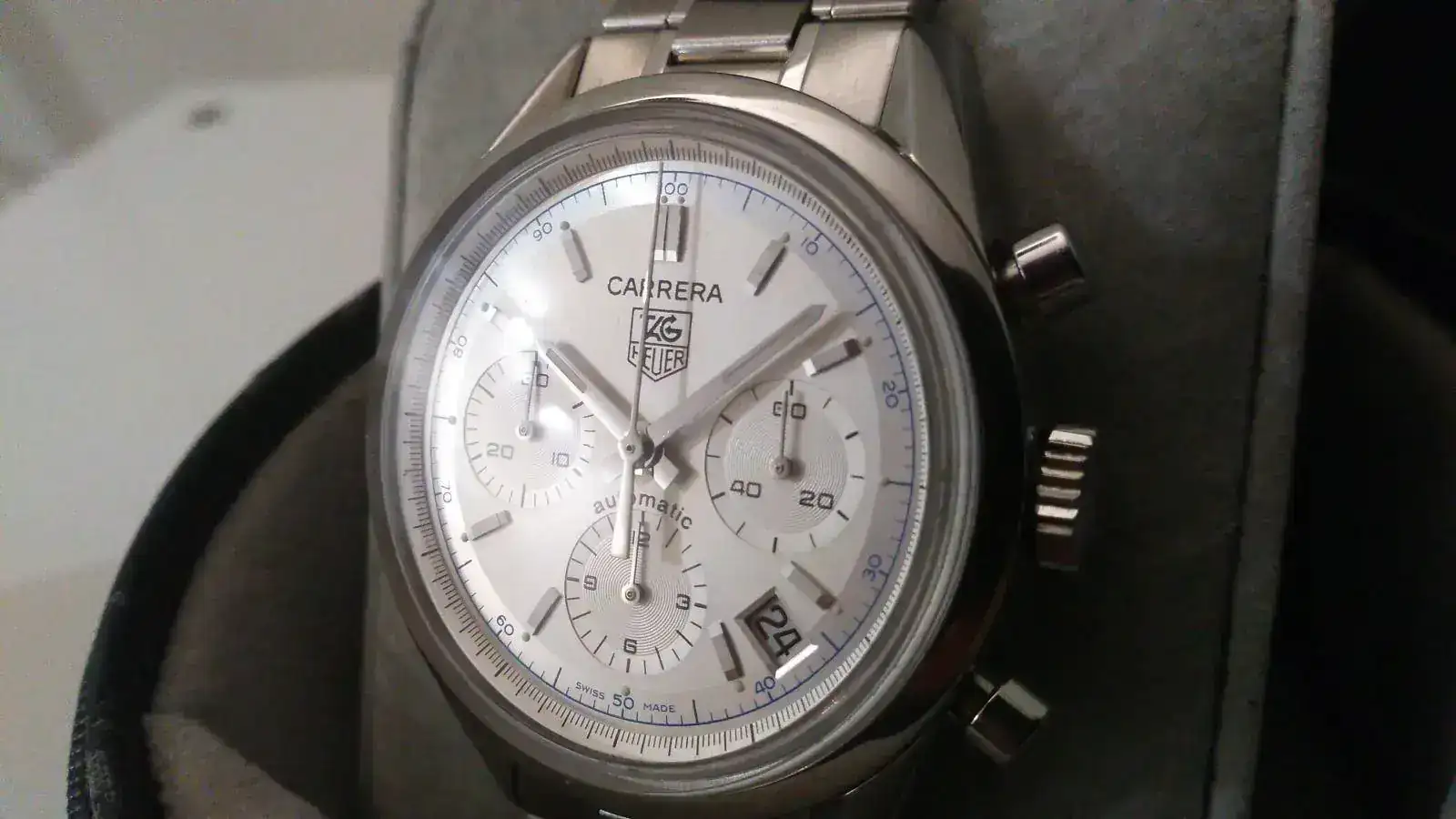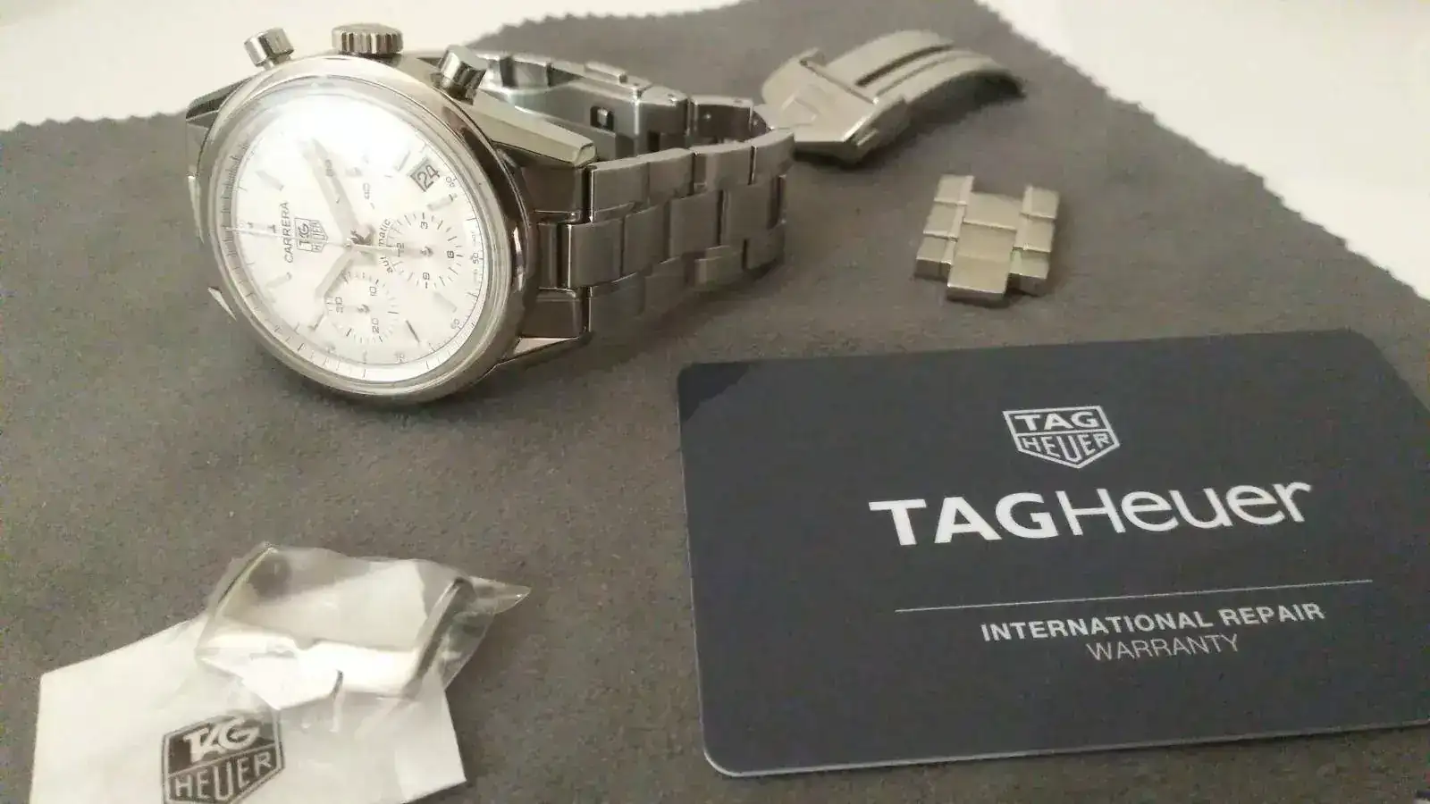 Se incluyen tres accesorios originales, un deployante de Tag Heuer, una hebilla original Heuer nueva a estrenar de 18mm, y un estuche original Tag Heuer de viaje.Lo vendo por no usar y tener en mente ir a por una nueva pieza. Es una gran oportunidad de hacerse con este gran clásico Carrera a un precio razonable.