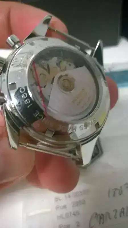 El reloj es de reestreno, ha sido pulido por lo que no tiene NINGUNA marca en la caja, se le han puesto nuevos los pulsadores y la corona.