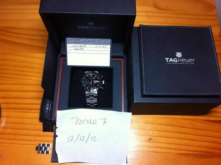 Buenas compañeros. Pongo a la venta este Tag Heuer Carrera Racing en perfecto estado, comprado el mes pasado, así que con 23 meses de garantía por delante. El reloj está de reestreno, pues han sido dos las puestas, creo. No tiene marcas y el armis está en perfecto estado, comprado aparte. La correa de cuero original con cierre deployante es la que me venía con el reloj, también en perfecto estado. Como bien sabéis, es un calibre 16 (7750) que va de maravilla. Cristal de zafiro con tratamiento antirreflejos, fondo visto también zafiro, caja de 41 mm (44 con corona incluida). Viene con su set completo, cajas, documentación y garantía vigente. Y Poco más puedo decir que no sepáis de este pepino. El precio que pongo es de 1760 euros, envío incluido sin asegurar Nacex 24H. No quiero cambios pues necesito hacer hucha para otro bichillo.