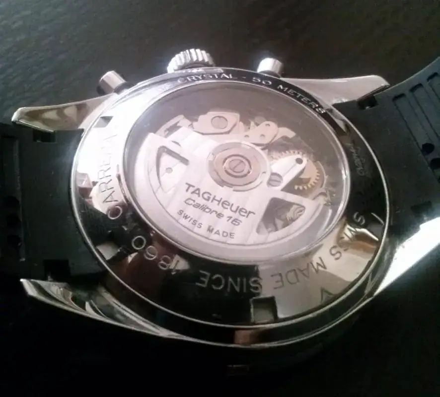 Vendo Tag Heuer Carrera Racing calibre 16, 41 mm. con cristal de zafiro y fondo visto, correa de caucho y cierre deployante.