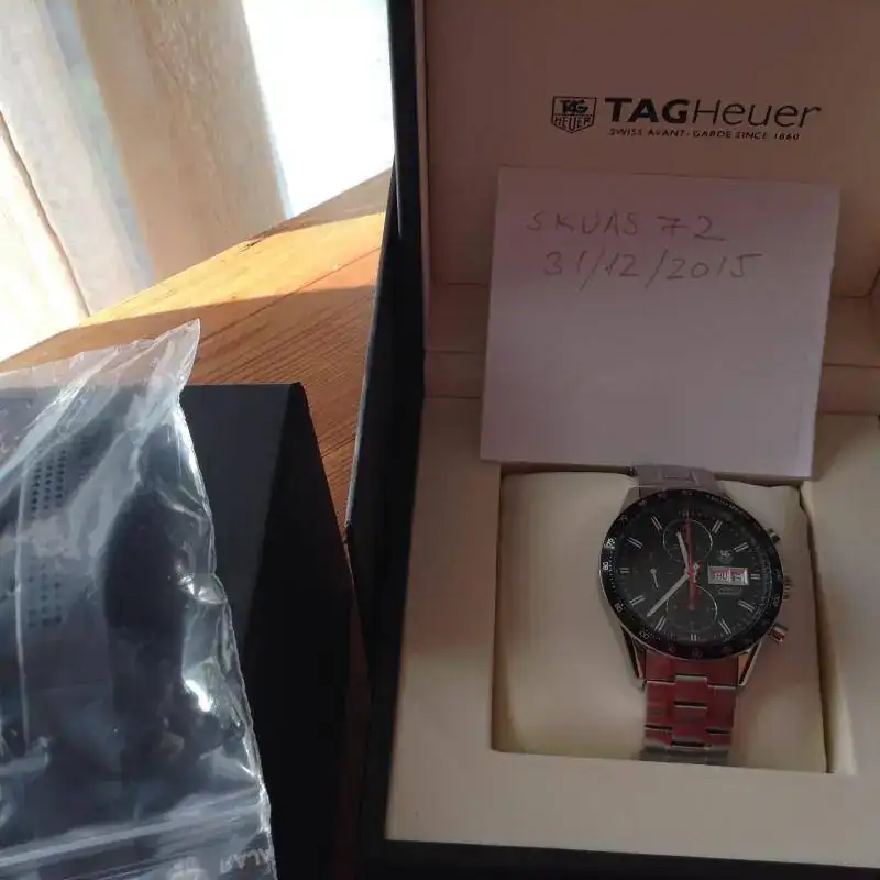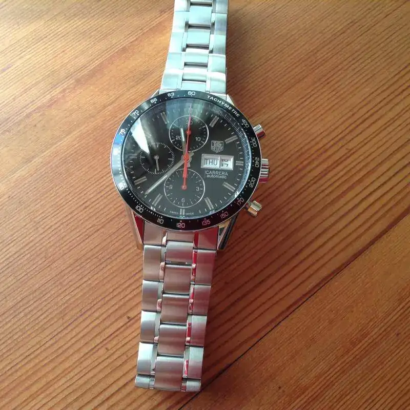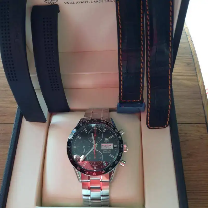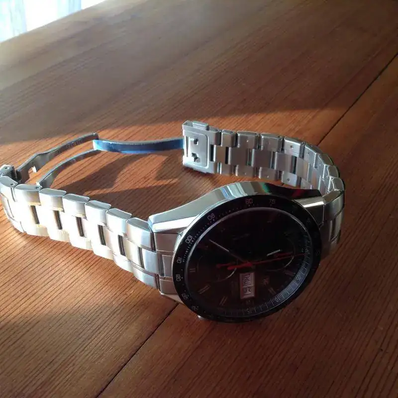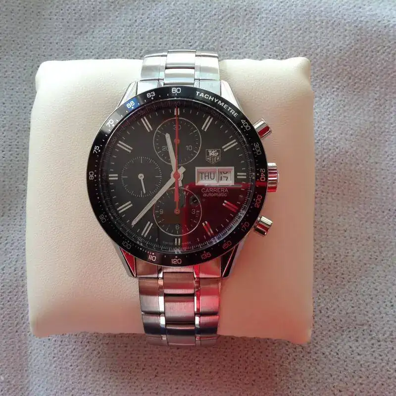 Saco a la venta este TAG HEUER CARRERA DAY DATE . Su estado es de re estreno, conservando sus plásticos de protección el reloj,el armis y el deplo. Este modelo venia con caucho, pero el compre el armis y una correa de cocodrilo de Jacob Strap especifica para este modelo. El precio de tarifa de este reloj son 4200, euros que si le sumamos el precio del armis y de la correa de piel, llegamos a más de 4700 euros.